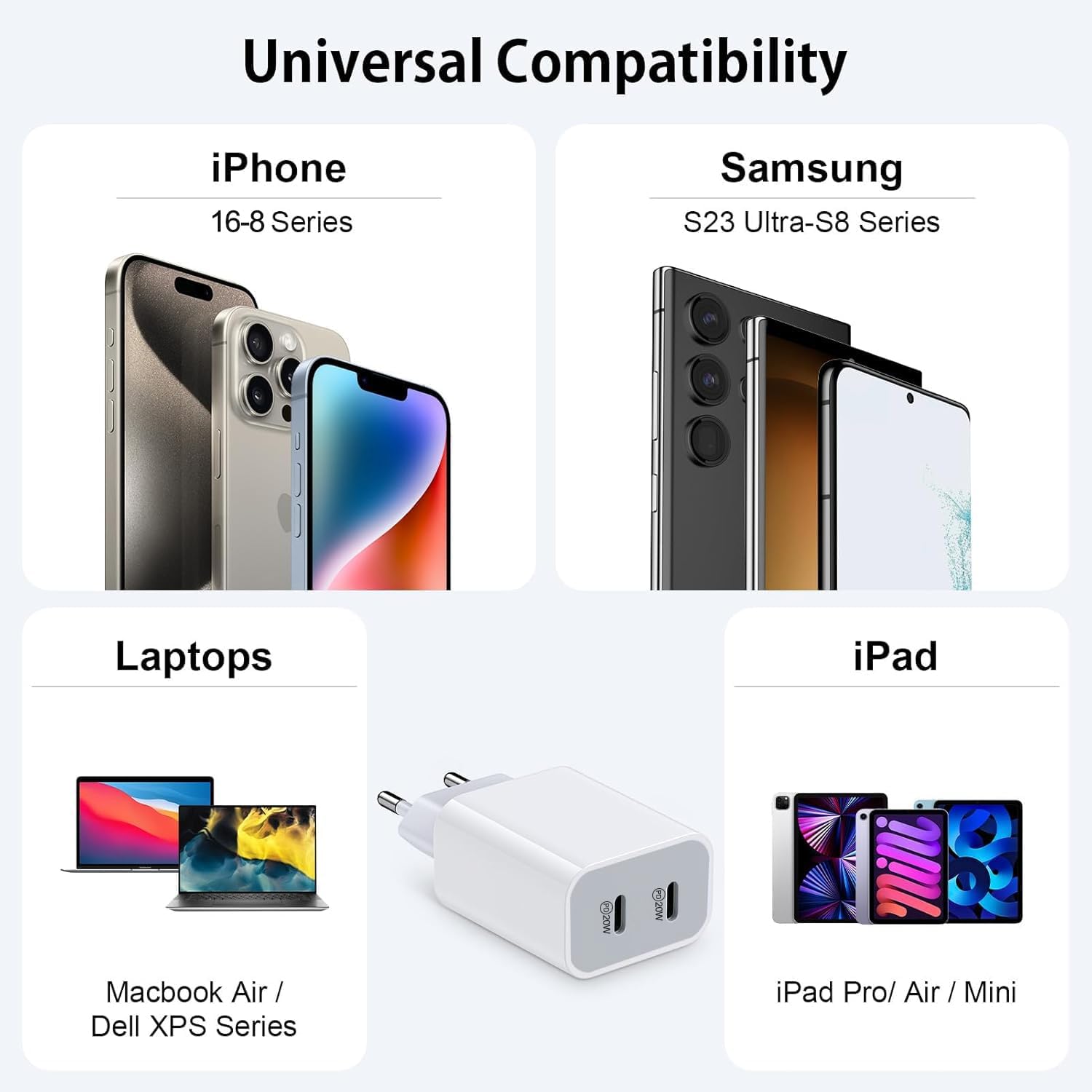 【PD/QC Technology, Numerous Compatibility】: Compatible with iPhone 17/17 Pro/17 Pro Max/17 Air/16/16 Plus/16 Pro/16 Pro Max/15/15 Plus/15 Pro/15 Pro Max/14/14 Pro/14 Pro Max/14 Plus/13/13 Pro/13 Pro Max/13 Mini/12/12 Pro/12 Pro Max/12 Mini/11/11 Pro/11 Pro Max/XS/XS Max/XR/X/8/8 Plus/SE, MacBook Pro, MacBook Air, MacBook, Galaxy S22/S21/S20/S10/S9/S8/A12/A13/A22/A32/A52/A53/A71/Note 20 10, Tablets, LG, Google Pixel and other devices.