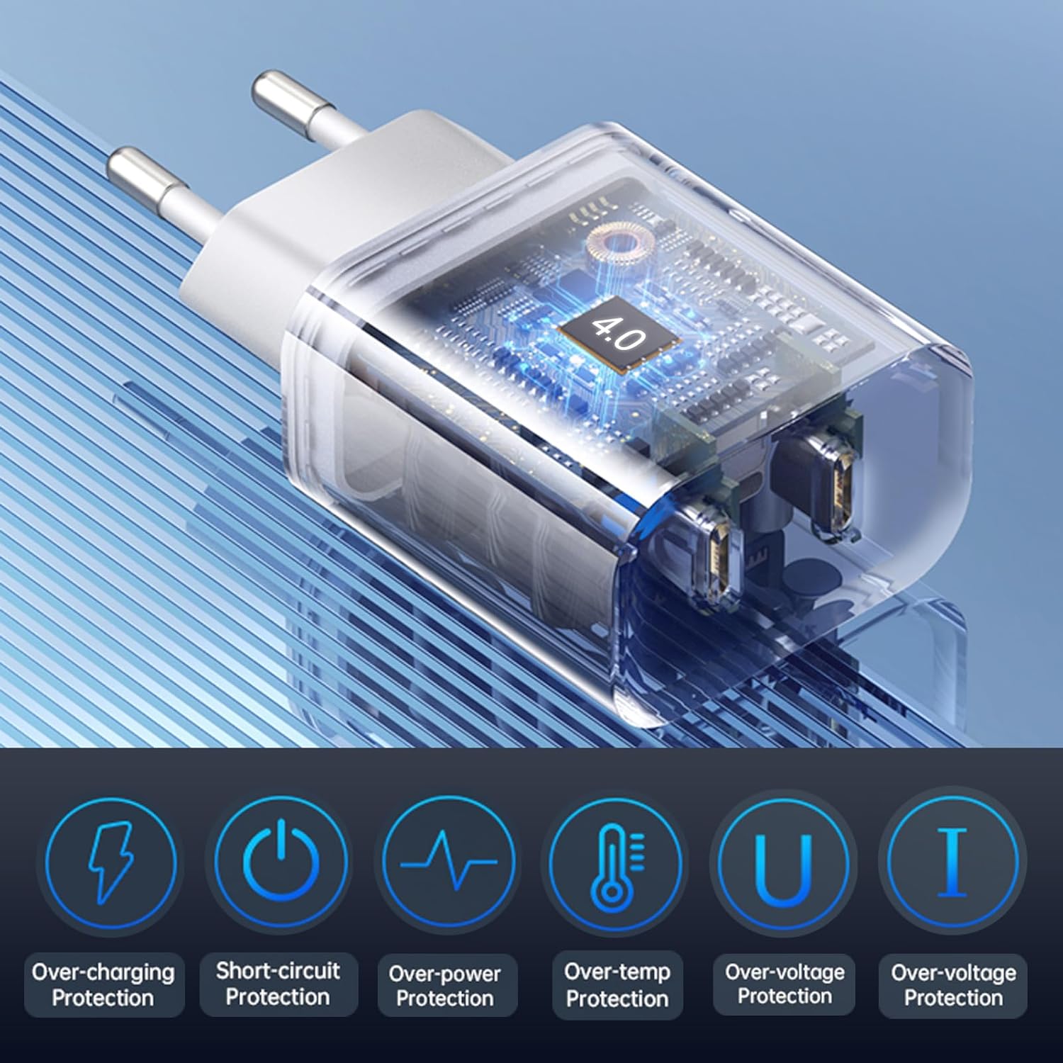 【CARZONJX 40W European Charger Adapter】:European travel essentials—40W USB C Fast Charger Block, this travel-friendly charger offers the most advanced version PD4.0, compatible with PD2.0/3.0, supports higher output power and faster charging speed, and can charge your iPhone 16 from 0% to 60% in just 30 minutes. The PD4.0 charger also supports a variety of fast charging protocols, including QC2.0/QC3.0/QC4.0/PPS/AFC, etc., which can adapt to more charging devices.