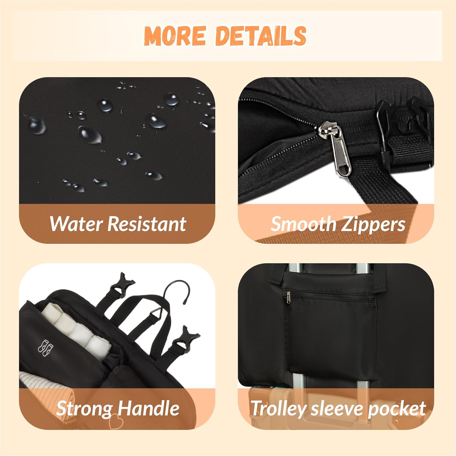 Durable Lightweight Farbic – We use the softest, lightest but durable materials to reduce the weight of the organizer without increasing the weight of luggage.Durable Workmanship – We tested the tensile strength of the entire storage bag. Even if it is filled, there will be no tearing.