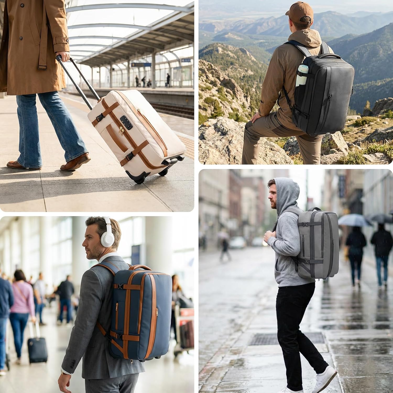 More Practical Features: This vacuum backpack travel with pump incorporates 7 versatile pockets to streamline your packing. These include a dedicated vacuum compression bag for clothing , a wet/dry separation pouch for damp items, a padded laptop compartment, a side water bottle pocket, and three organizer pockets for small essentials. The expandable design allows the capacity to be increased. Ample storage that complies with airline carry-on standards, balancing space and convenience