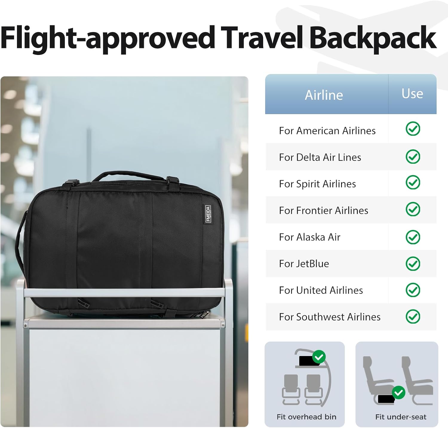 Fmeida Flight Approved Carry On Backpack for Ryanair Fits 14″ Laptop – 20L Underseat Airplane Approved Weekender Bag, Anti-Theft Travel Backpack, Personal Item Bag Black