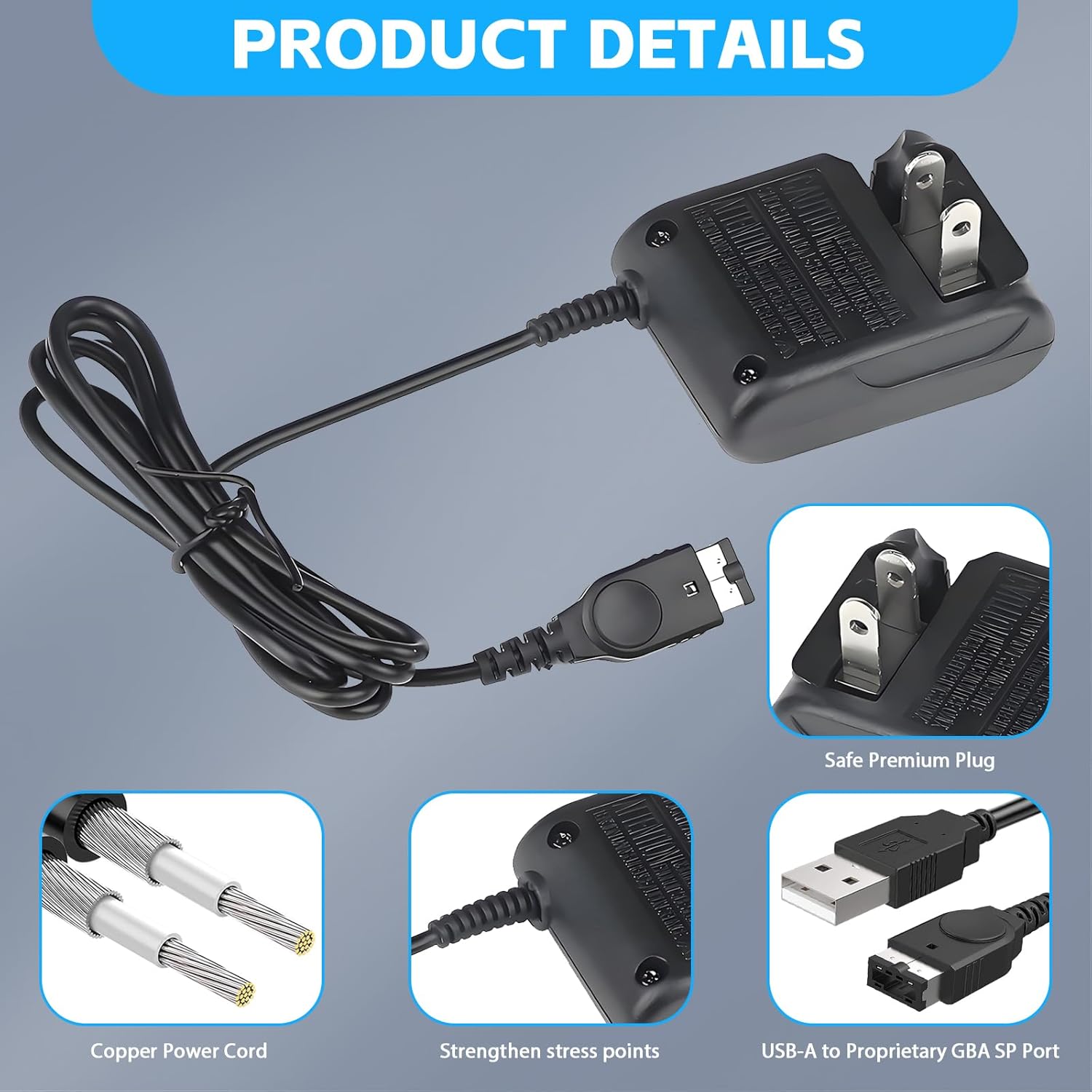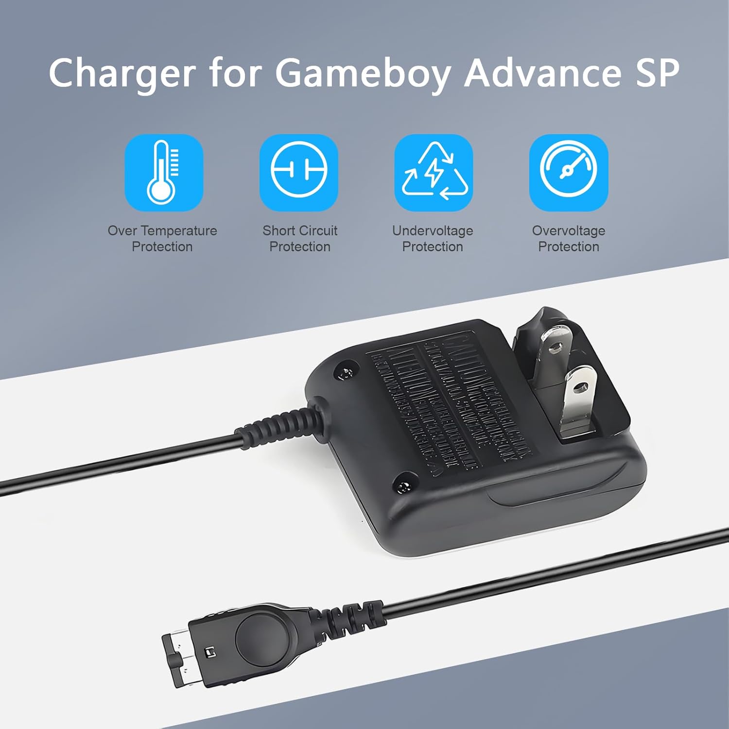 The GBA sp charger built-in safeguards that protect your gaming device from excessive current, overheating, overcharging, and other potential hazards.ensuring maximum safety