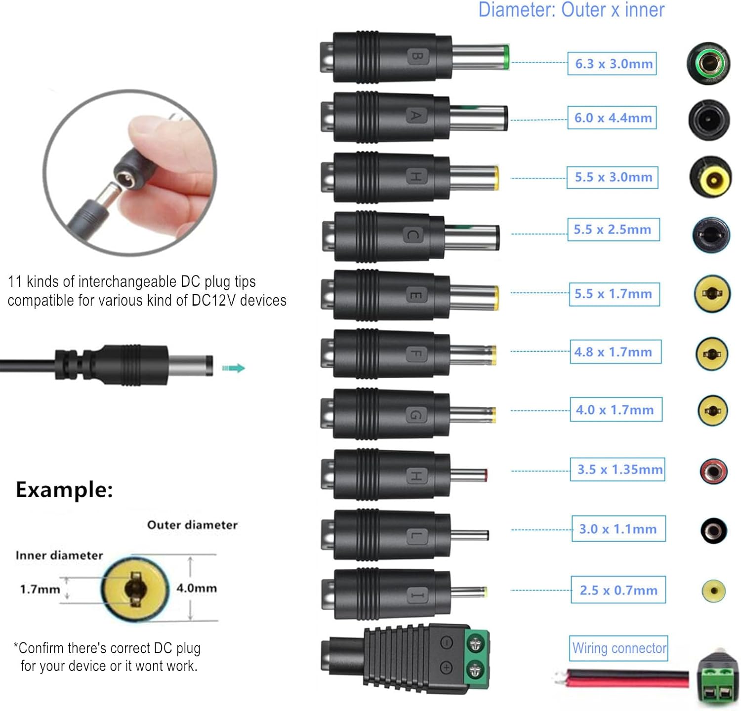 With 11 DC plug tips