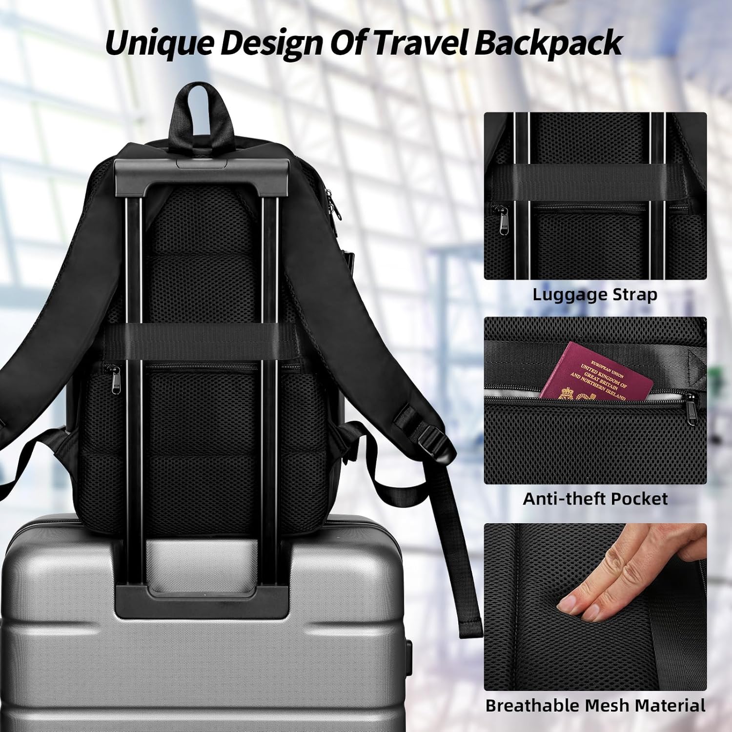 【Luggage Strap and Anti-Theft Design】The luggage strap design of this carry-on bag allows the bag to be attached to the luggage rack, freeing up your hands and back for easier air travel and business trips. The top of the backpack is designed with soft handles for easy daily use. Back zippered pocket protects your valuables such as wallet, passport and ID card from theft while traveling or waiting in line