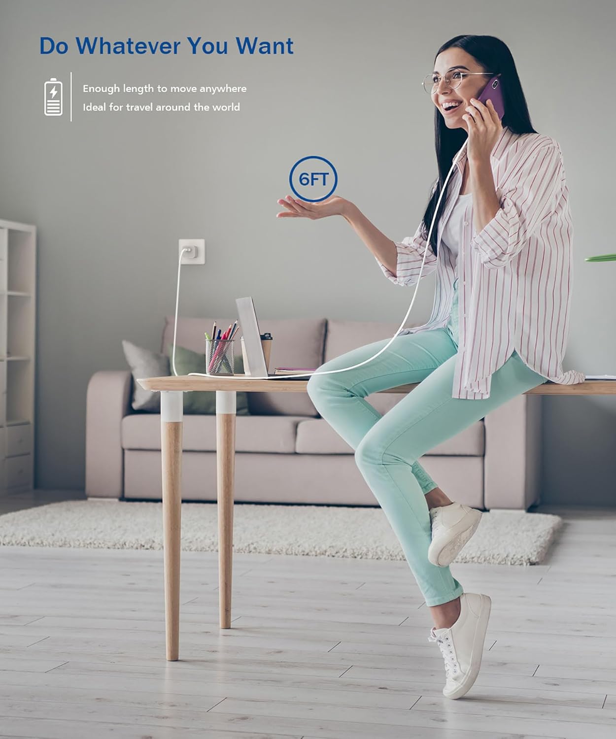 pple MFi Certified 6FT Extra Long Fast Charging Data Sync Cable with USB Wall Charger.
