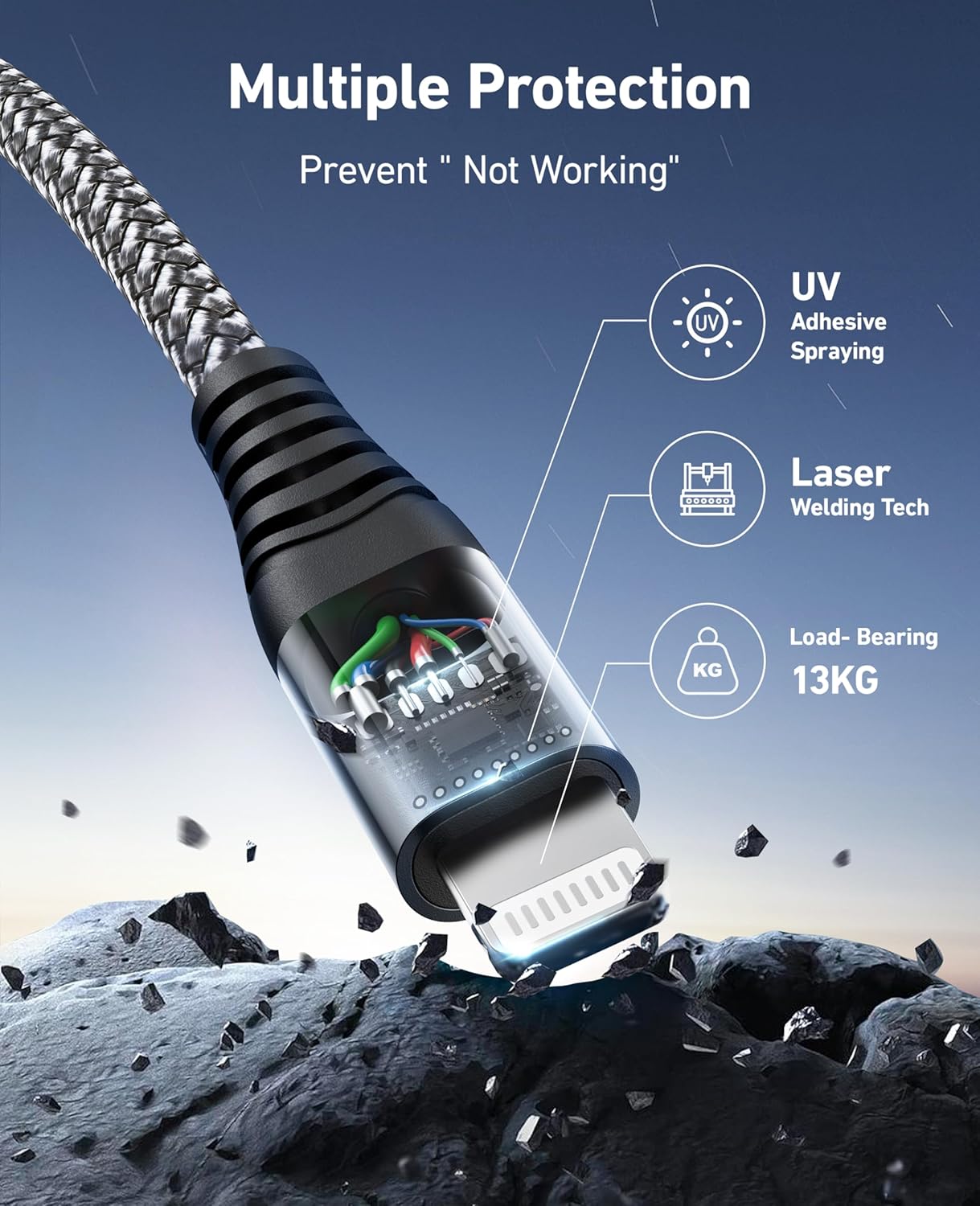 This iPhone charging cable has additional layer of protection design, it can be bend 90-degrees 10,000 times