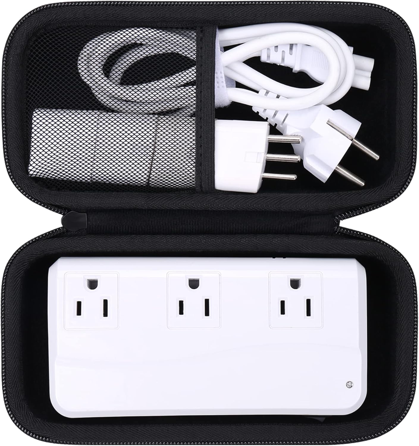 A dual-section layout provides organized storage, with a mesh pocket for accessories and a dedicated compartment for your BESTEK universal travel adapter power converter adapter combo. Whether carrying a universal power adapter case, travel converter and adapter worldwide, or a converter for European travel, this design helps families, students, and business travelers keep essentials easy to access.