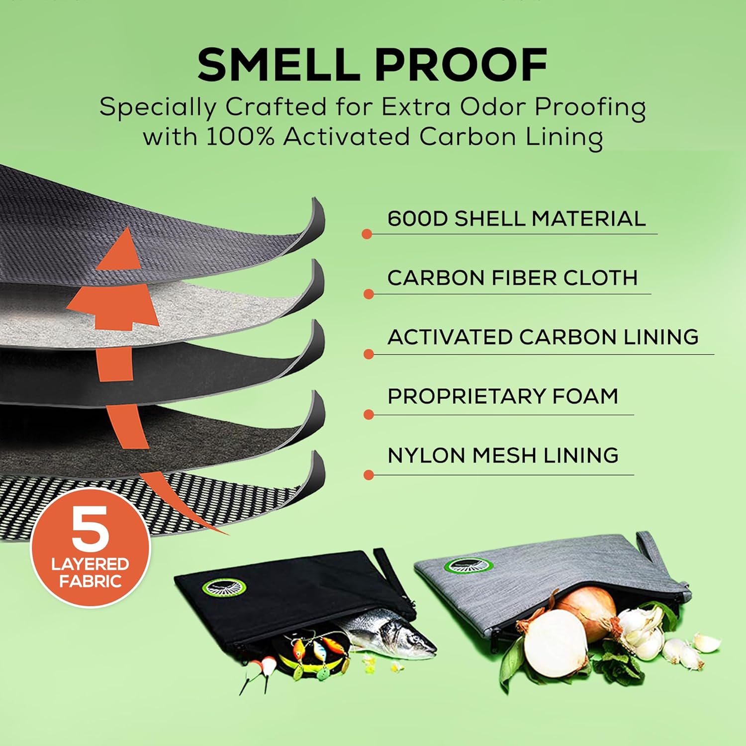 Large and Small Smell Proof Bag Combo, Smell Proof Container, Dog Tested Odor resistant Bag, Best Zipper Odor sealing Pouch Herbs, coffee & Travel Medicine Bag, Scent resistent Containers