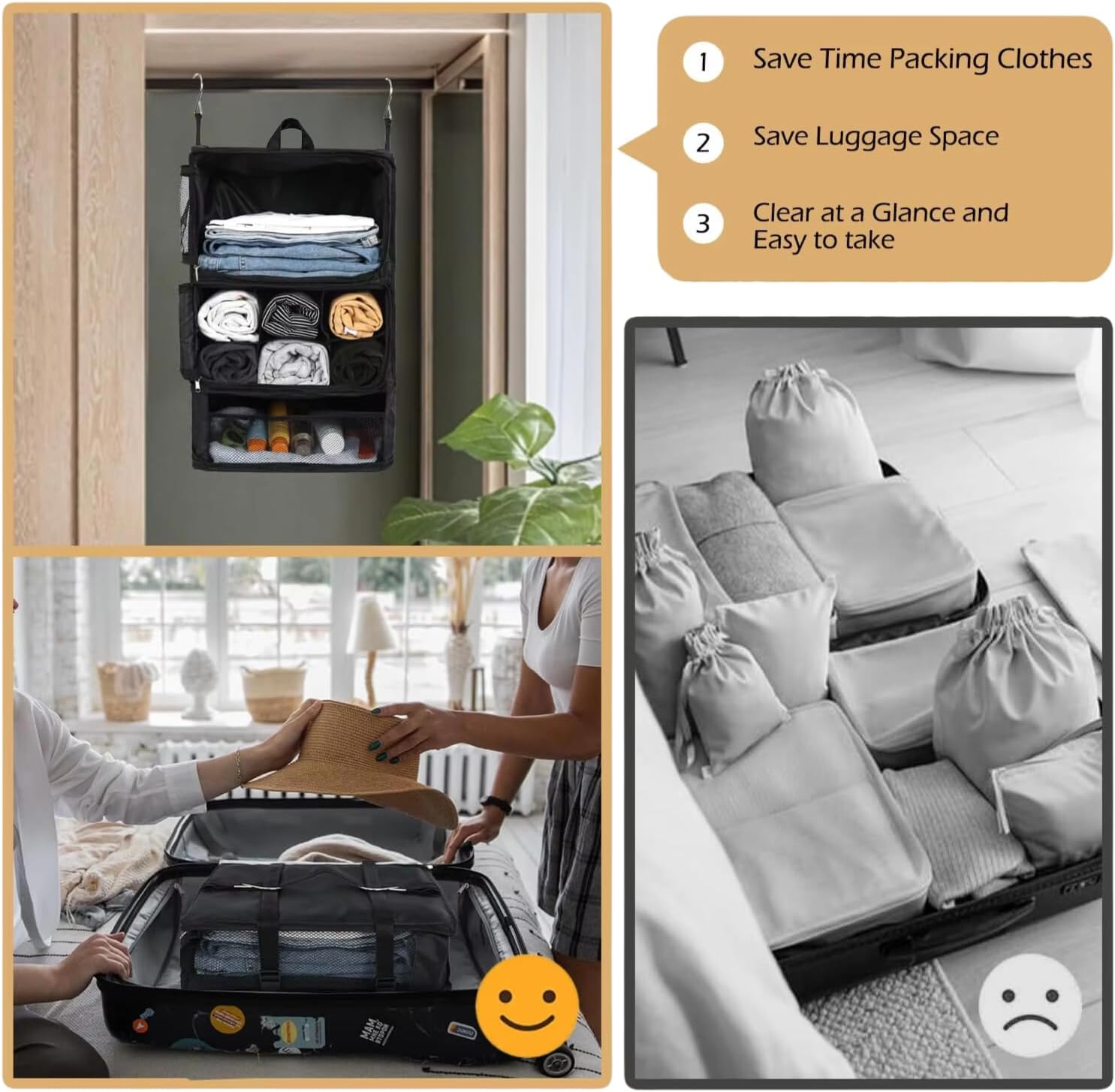 Large Capacity Hanging Organizer – Travel, Suitcase Compression, Luggage Packing, Clothes Closet, Portable Storage Shelves, Includes Shoe Bag