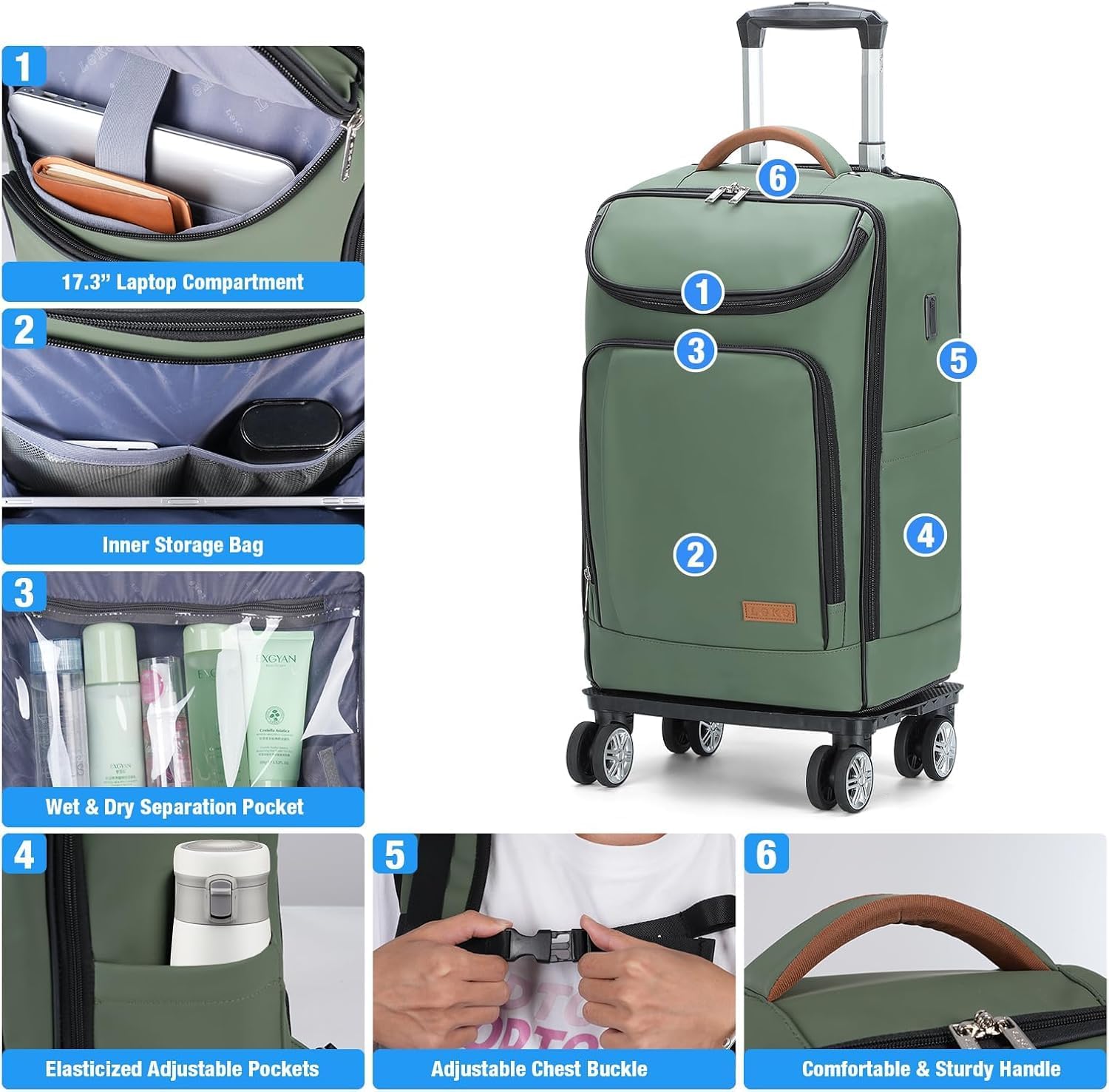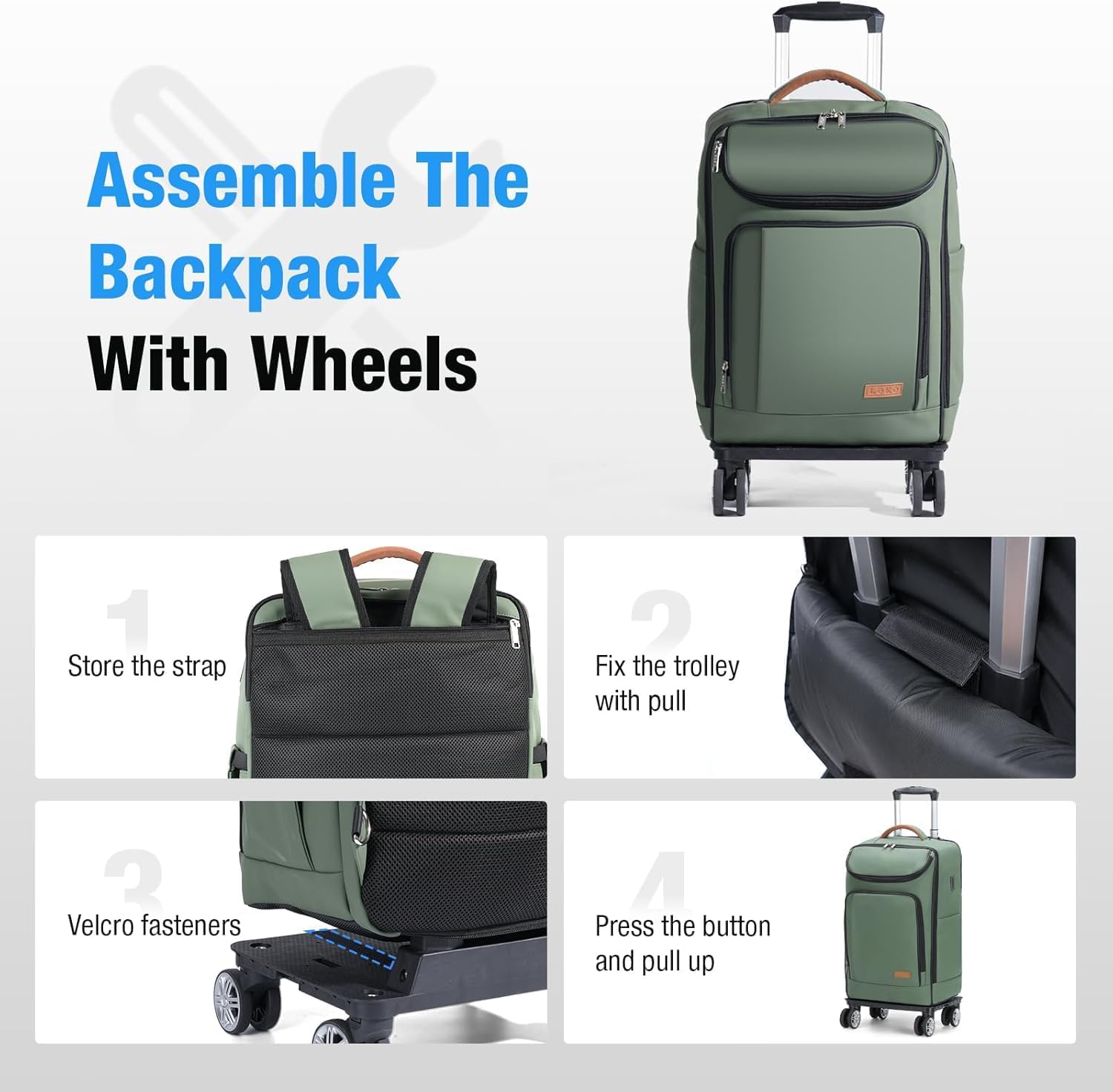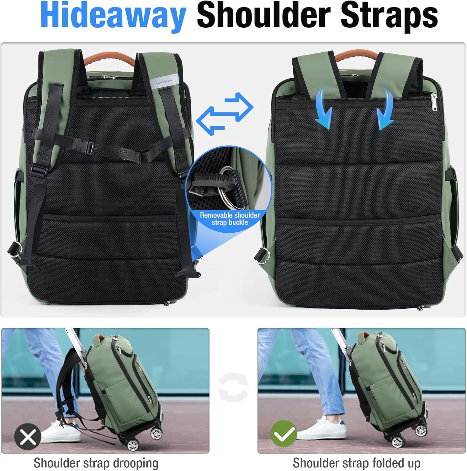 [2025 New Upgraded Version]-Lekebobor rolling backpack has been designed with functionality and comfort in mind. In order to make it more ergonomic, we have extended the length of the handle and added 360° wheels to make it easier and more convenient for your daily travels, making it an indispensable travel companion!