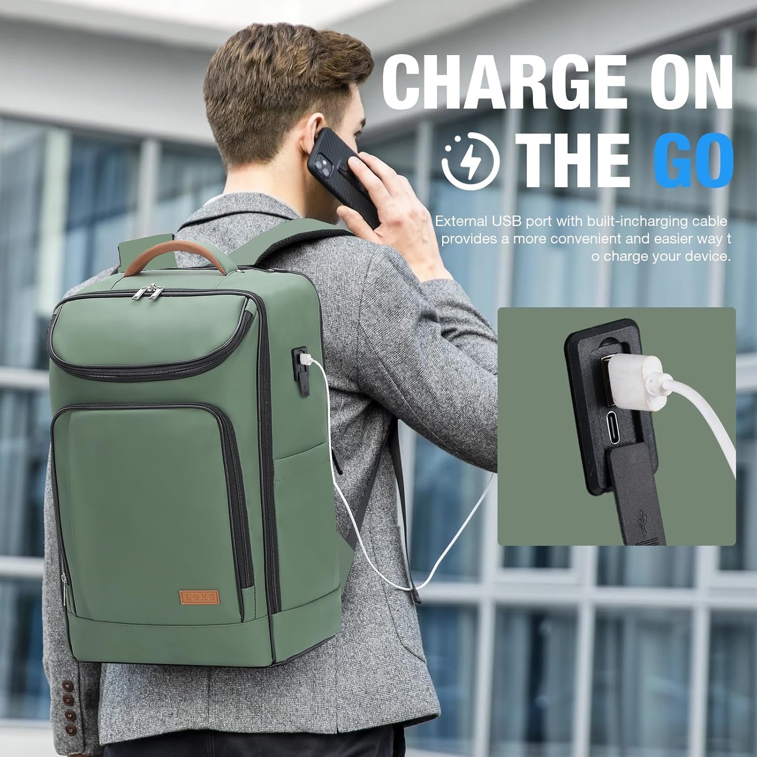 [TSA Friendly Size]-This 15.6″ travel backpack measures 21 X 14 X 8 inches, It is fully compliant with TSA carry-on requirements and is compatible with most airlines, fits perfectly in the overhead compartment. The compact design eliminates the need to remove your laptop or other electronic devices and allows you to pass through airport security by simply laying the bag flat.