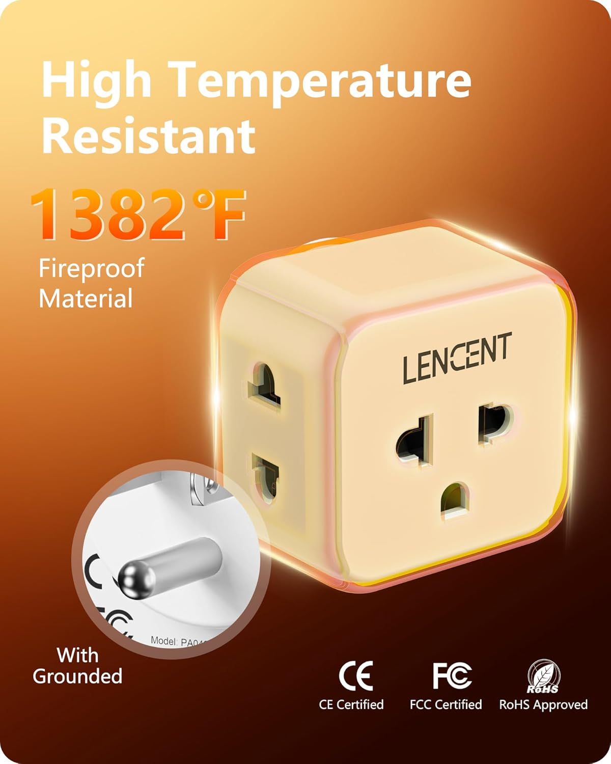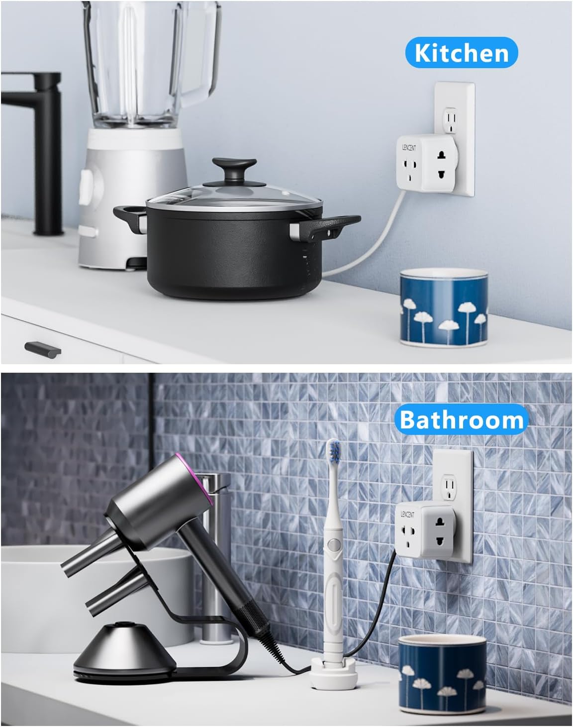 Safety Guaranteed & Practical: LENCENT 3-in-1 multi plug adapter is made of 1382℉ fireproof material, which greatly improves the durability and safety. Suitable for any indoor place, especially bedrooms, bathrooms and kitchens, it is a must-have choice for families