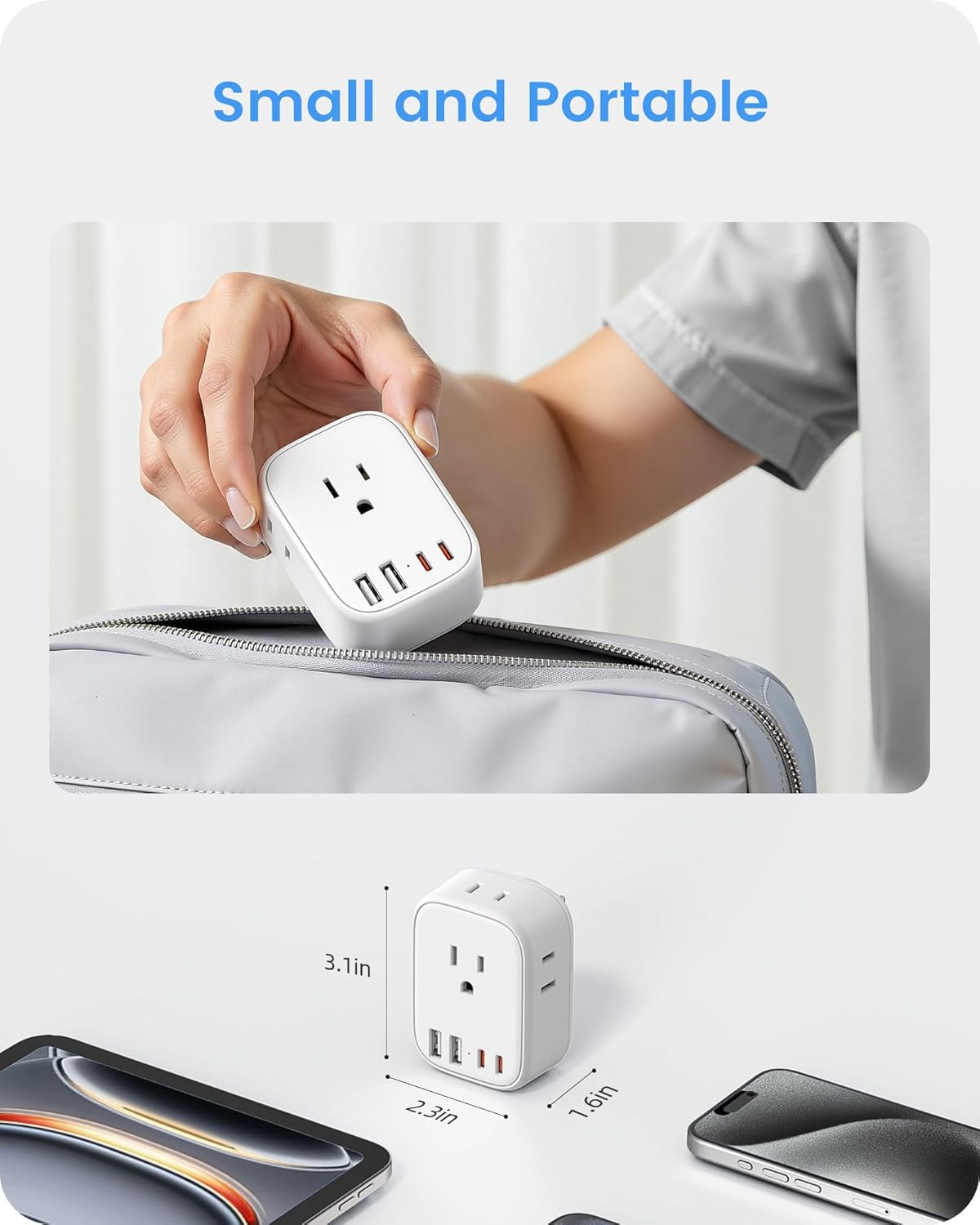 2 USB- C & 2 USB-A: This wall outlet extender is equipped with 2 USB-C(5V/3A 15W) and 2 USB-A (5V/2.4A 12W) ports to meet more charging needs. The Max output of USB ports is 5V/3.5A 17.5W, which is 50% faster than the other adapters. Ideal for iPhone 15/15 Pro/15 Pro Max, other Cell Phones, Cameras, Power Bank, Steam Deck, Shaver’s and more.