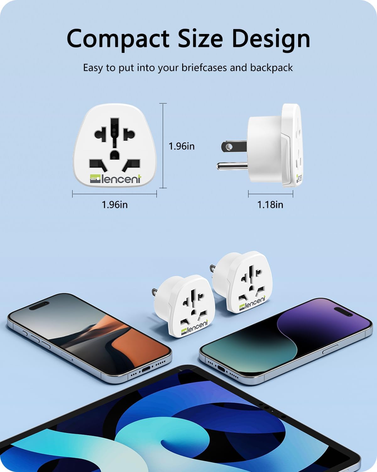 Compact Design- The World to US plug adapter provides a reliable and easy connection for devices, by just plugging the adapter between the wall outlet and your device; This travel adapter can be plugged in tightly and securely with hardly any protrusion