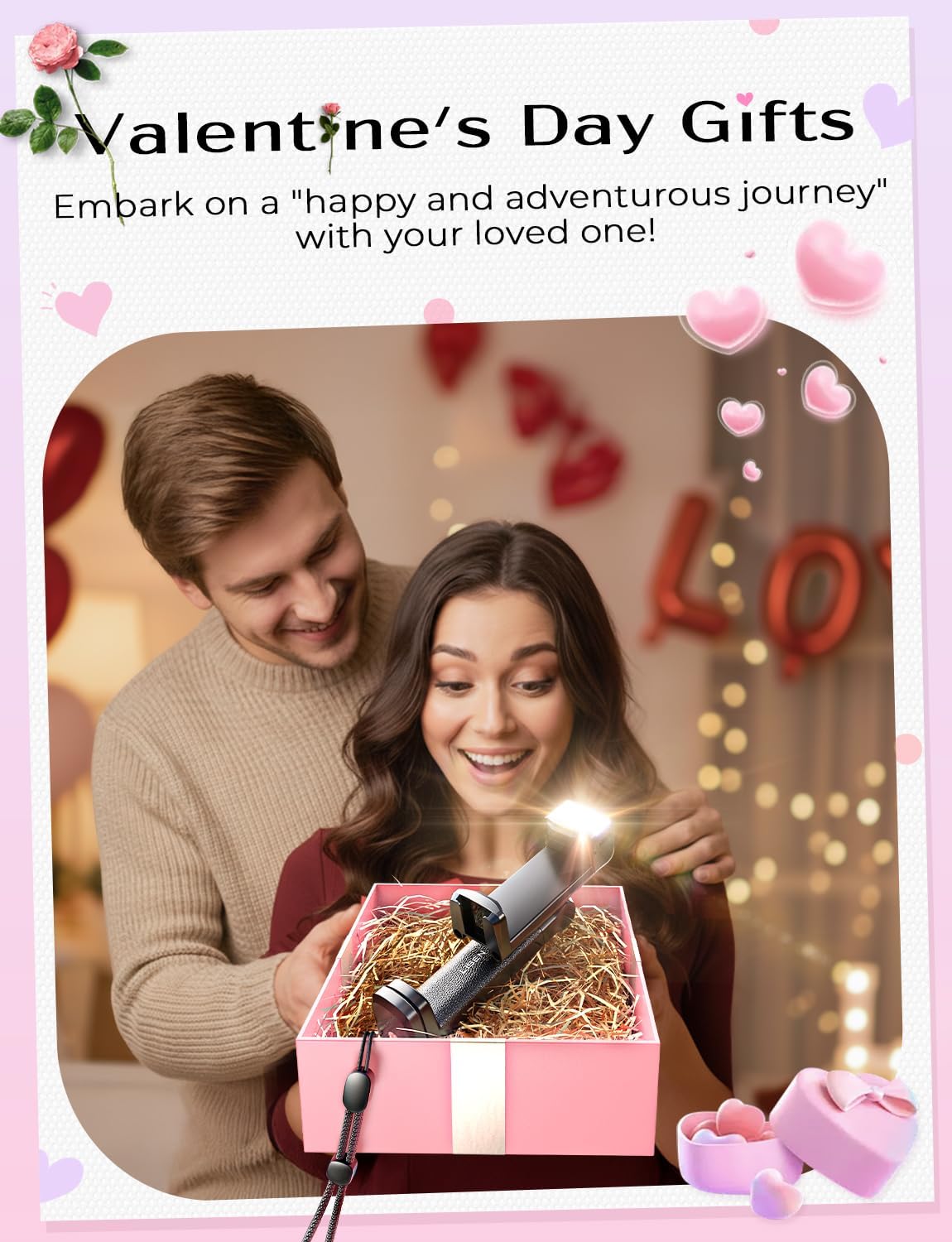 Travel Light, Save 75% on Space: This practical airplane gadgets integrates a fill light, strap, microphone port, and universal tripod mount. It securely attaches to suitcase handles, tray tables, desks, chairs, headboards, books, or mug handles. It also doubles as a portable selfie stick for vlogging