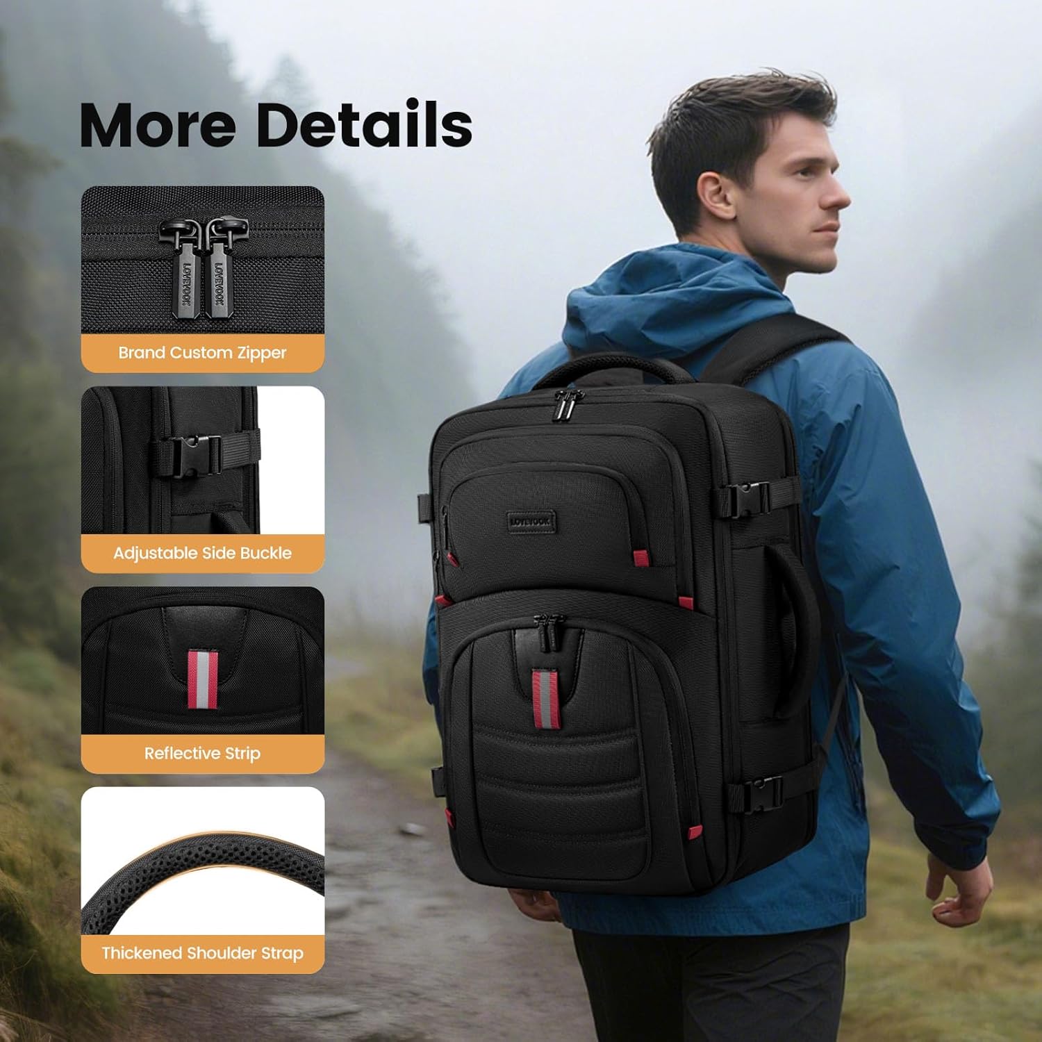 【Swiss Army Knife Inspired&Super Spacious & Versatile】This men backpack Inspired by the legendary Swiss Army Knife! Meets airline carry-on size limits (approx. 38x22x54cm / 14.96″x8.66″x21.26″), fits effortlessly in overhead bins or under seats. Includes 3 FREE storage pouches – perfect for cables, chargers, toiletries & other small essentials!