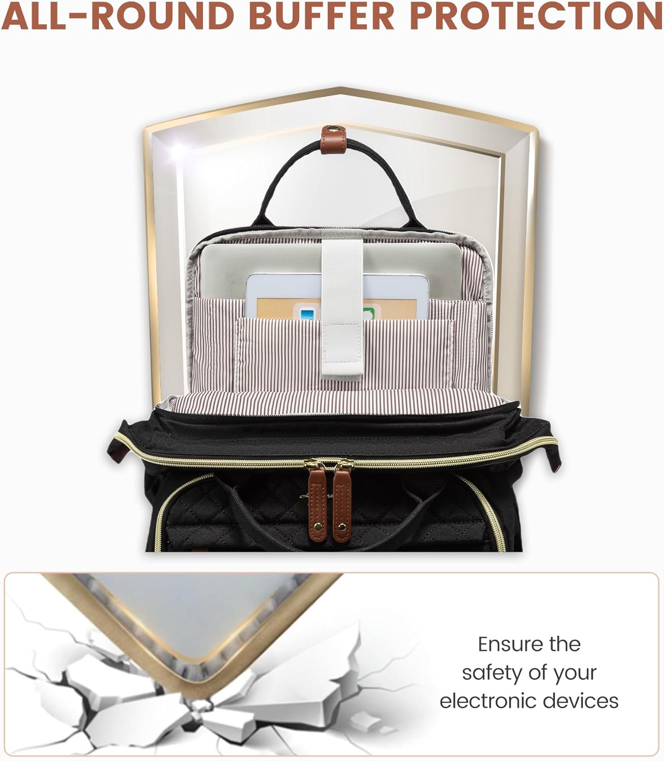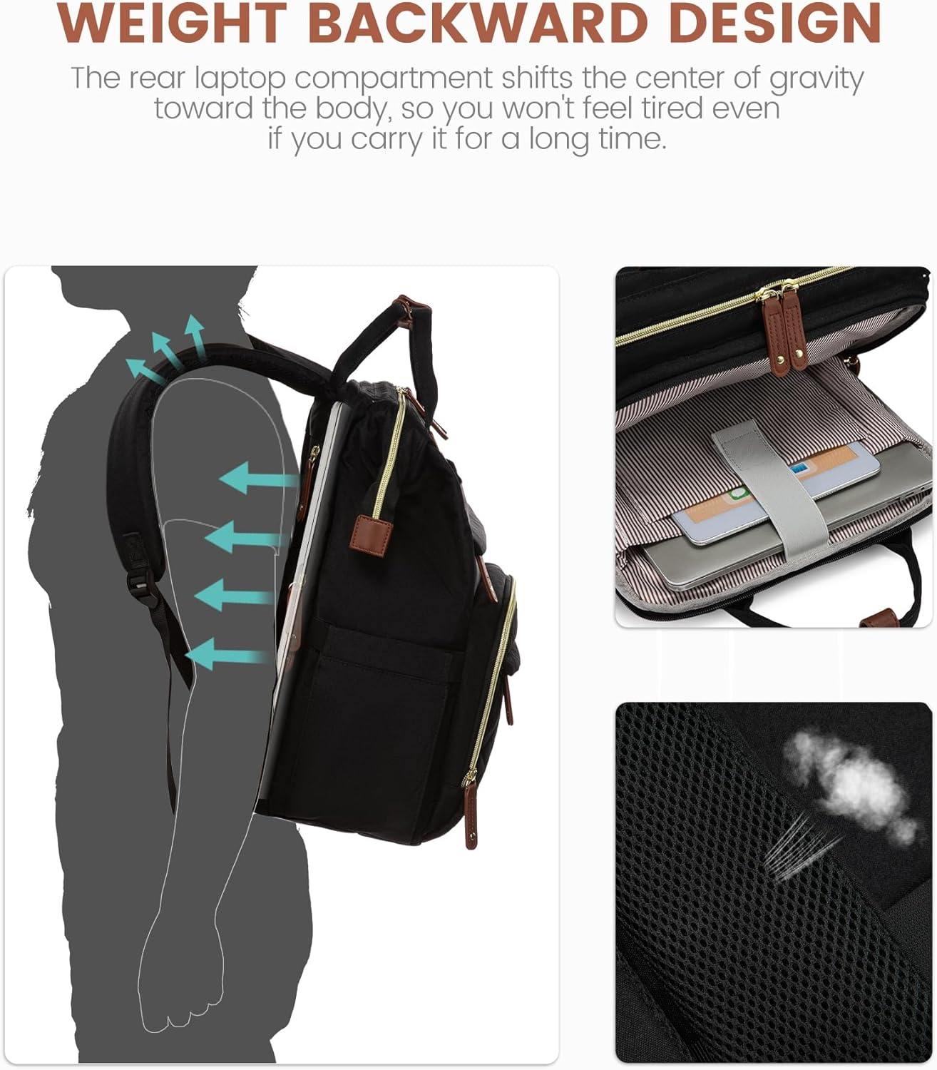 ERGONOMIC COMPUTER BACKPACK: Ergonomic design of our womens laptop backpack includes a rear laptop compartment and thick, breathable padded shoulder straps. The design centers the weight closer to your body, reducing shoulder and back strain even when fully loaded. Sturdy shoulder buckles ensure the straps stay in your most comfortable position without slipping.