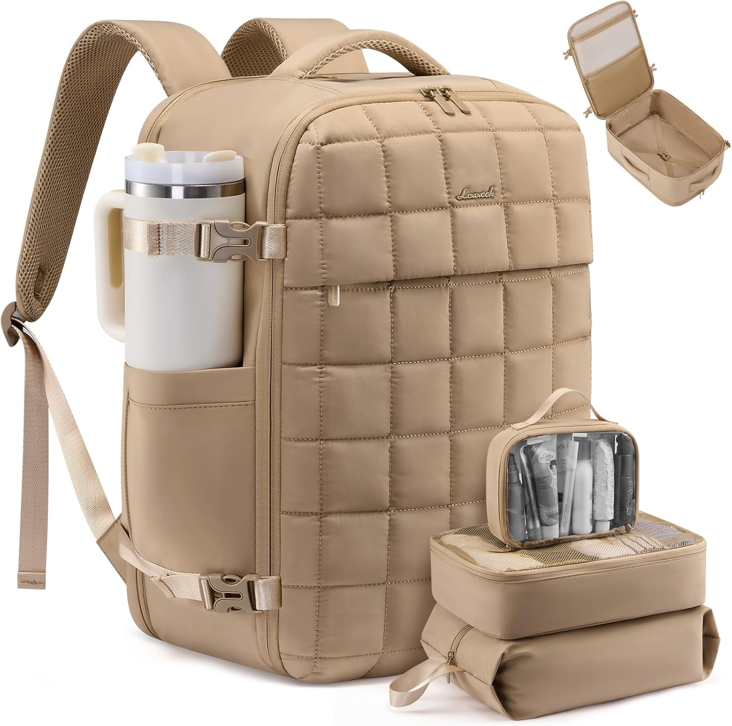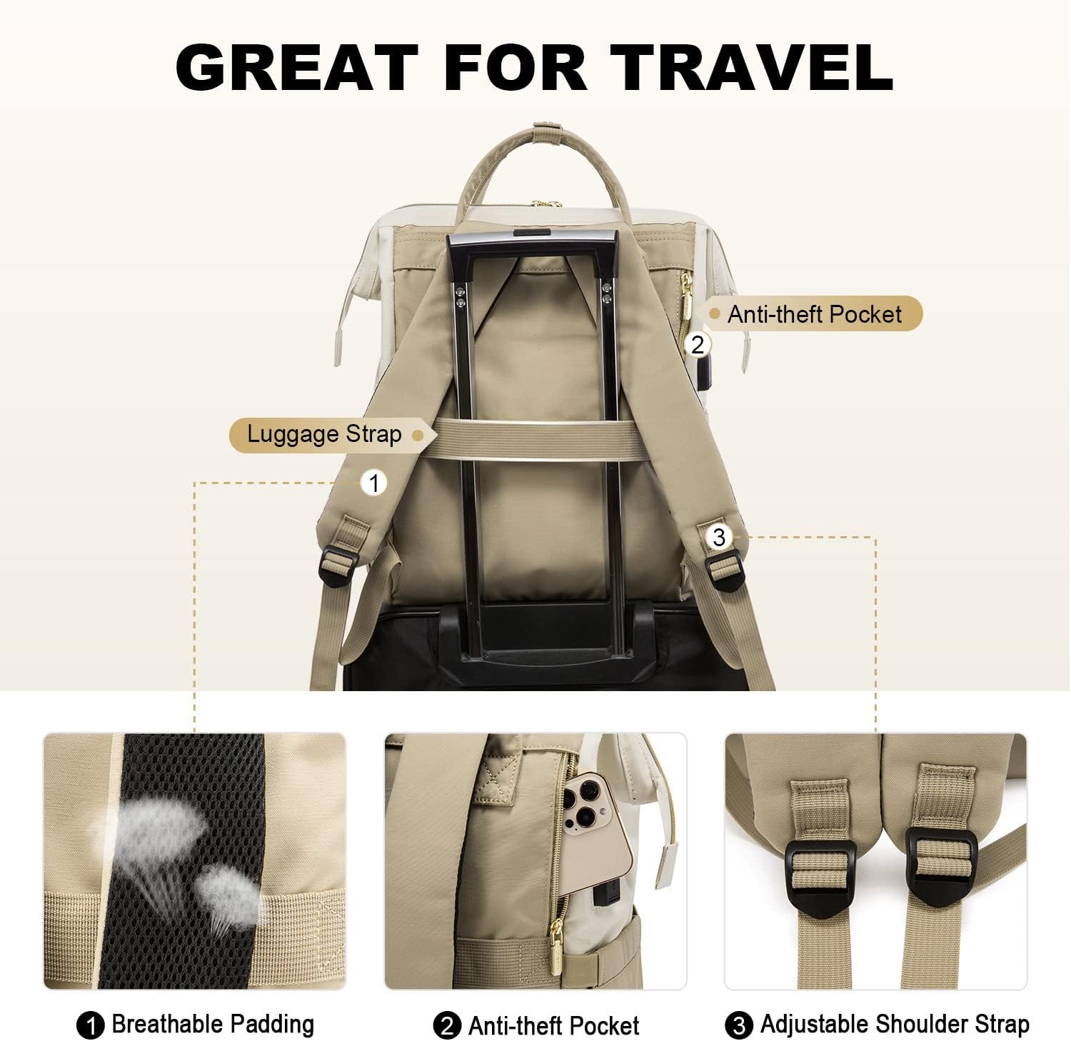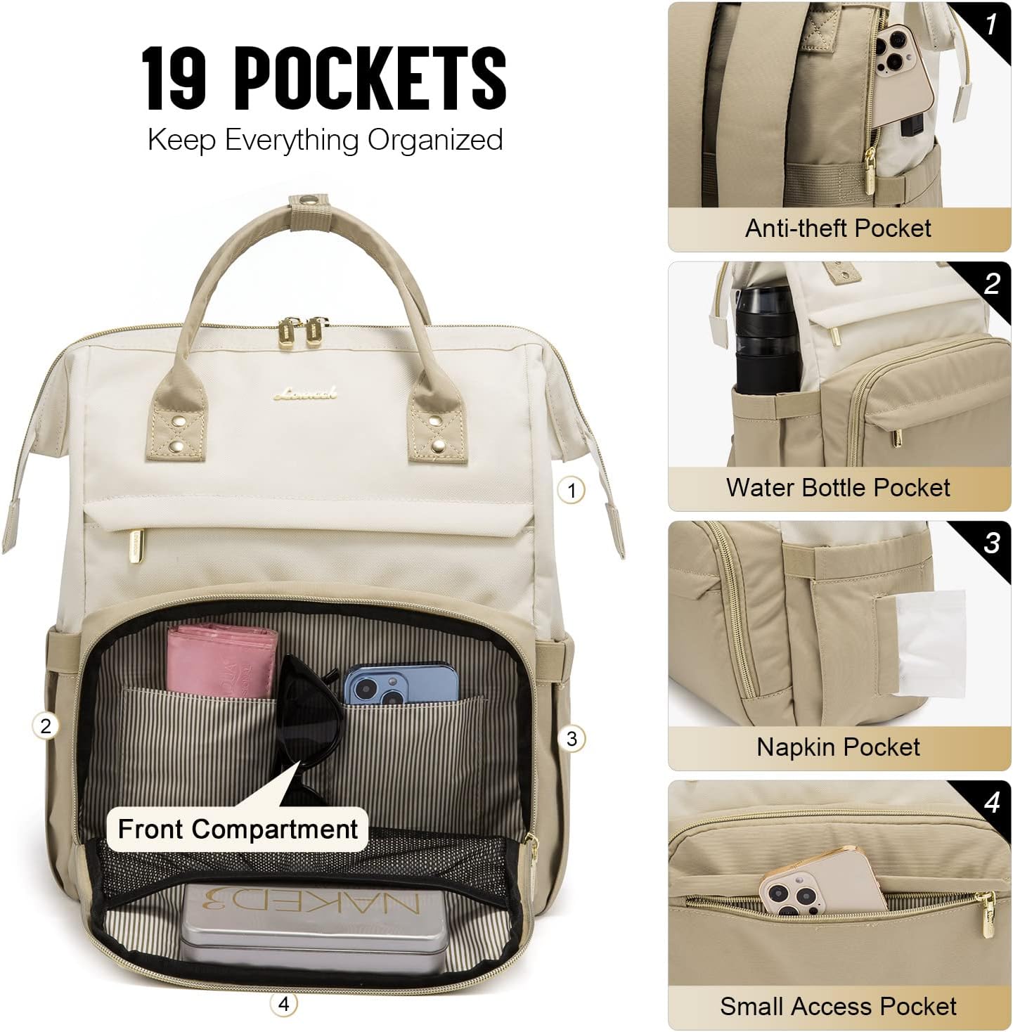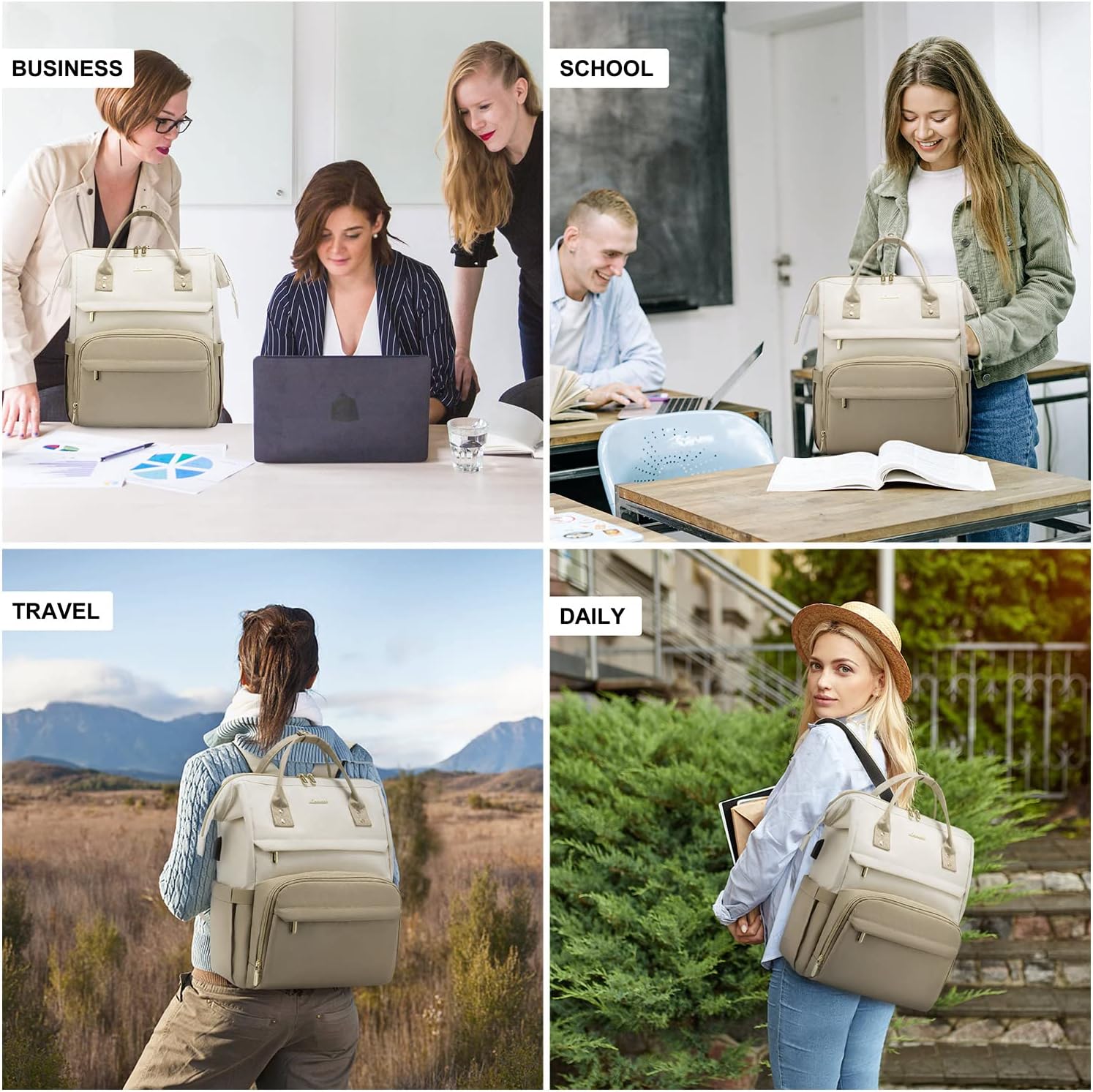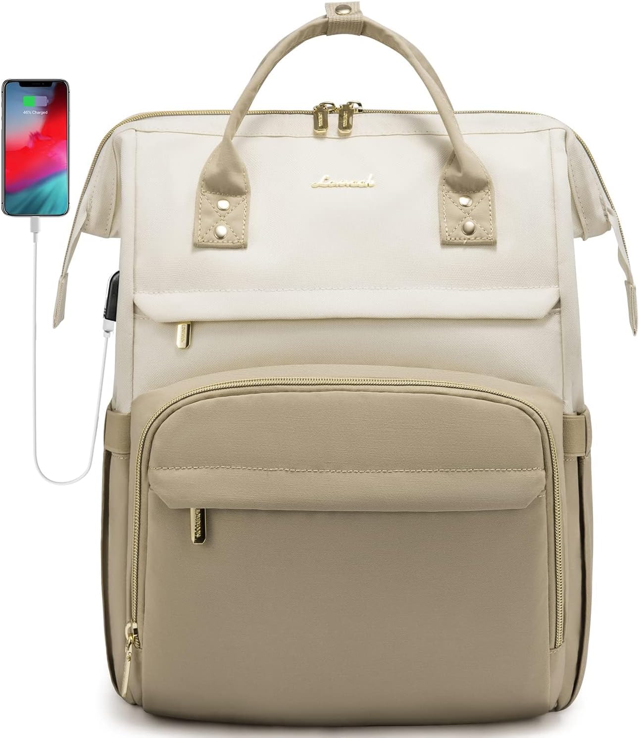 LOVEVOOK Laptop Backpack for Women, Fashion Computer Backpacks Purse, Business Travel Bags, Doctor Nurse Backpack for Work, Fits 15.6-Inch Laptop, Beige-Khaki