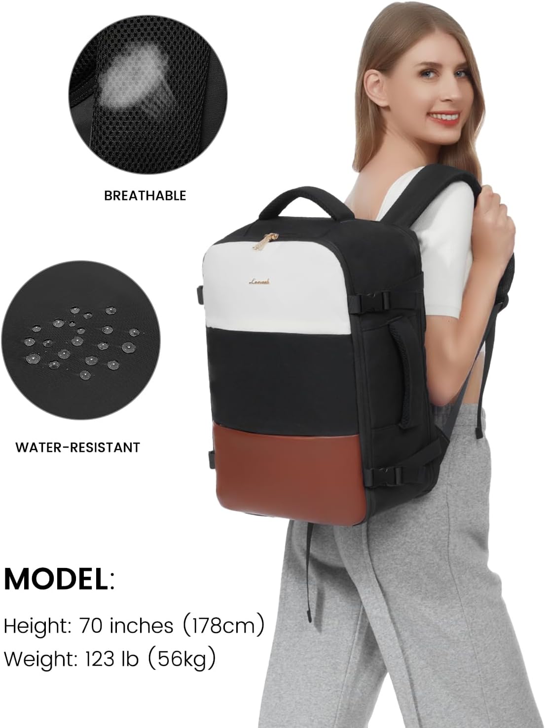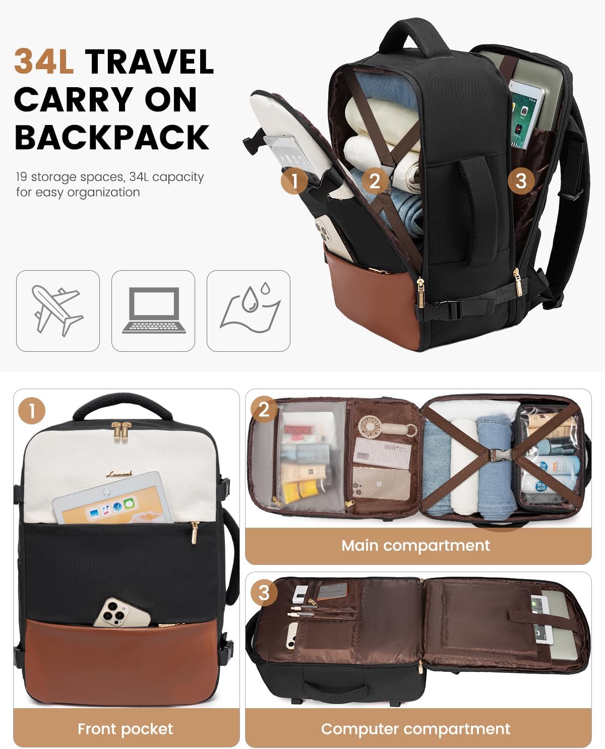 LOVEVOOK Travel Backpack for Women, Carry On Backpack Flight Approved with 3 Packing Cubes,TSA Personal Item Travel Bag Fits 15.6” Laptop,Weekender Hiking Business Luggage Daypack Beige Black Brown