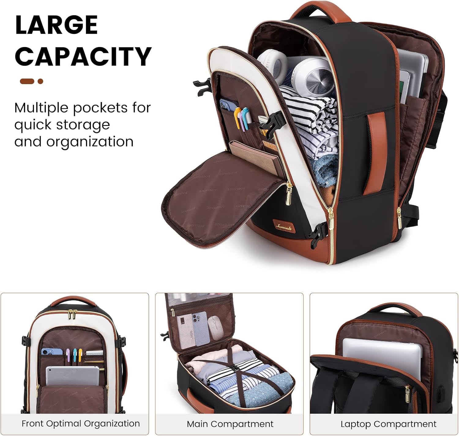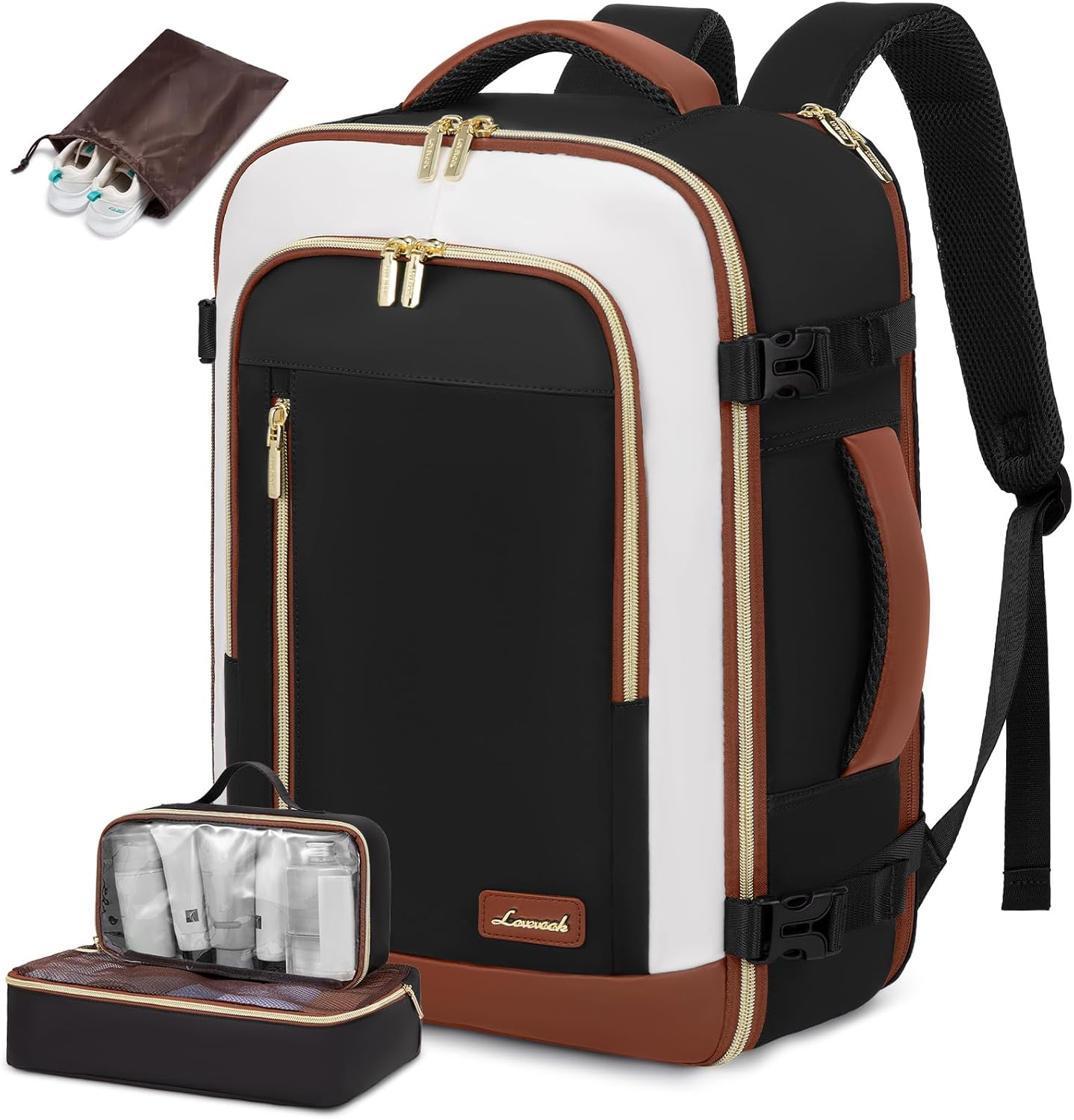LOVEVOOK Travel Backpack for Women & Men, 40L Carry On Backpack, Personal Item Bag with 3 Packing Cubes, Business Weekender Overnight Luggage Daypack, Fits 17 Inch Laptop, Black Beige