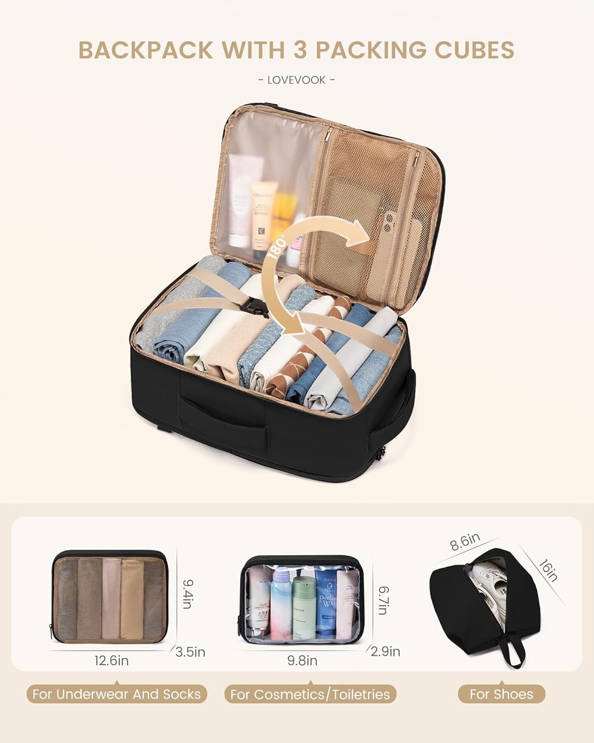 【180° Suitcase-Style Opening】The travel backpack offers a 180-degree opening main compartment for easy packing and quick access to your items, ideal for speedy security checks and on-the-go organization