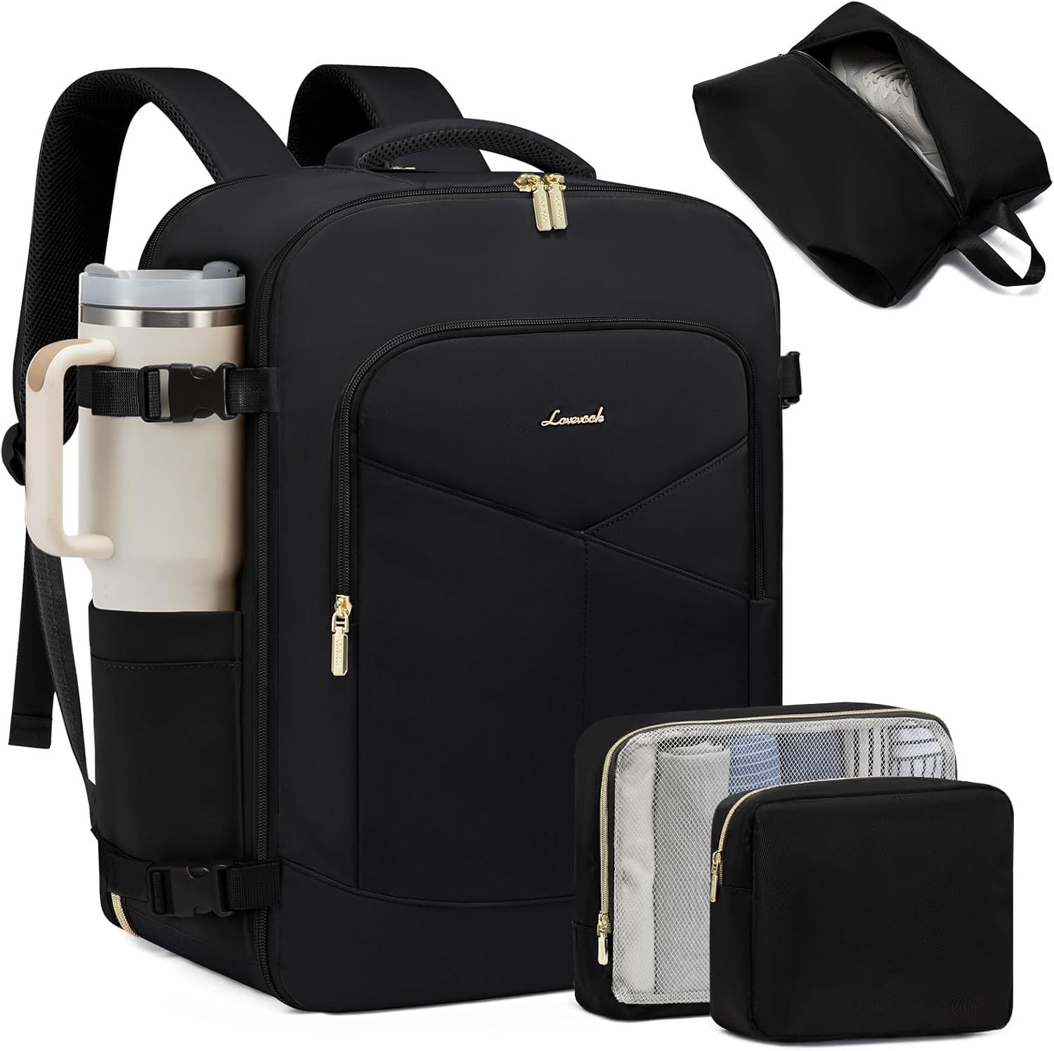✈【Large Capacity & Multiple Pockets】: The travel backpack has a 40L large capacity and 4 main compartments, which can meet daily and travel needs. The travel backpack for women’s main compartment can store a lot of things, including 5-8 pieces of clothing, shoes, books, and many other items. The separate laptop compartment is padded with EVA foam to provide the best protection for your 17″ laptop and 12.9″ iPad. The front compartment has many pockets to keep your belongings organized.