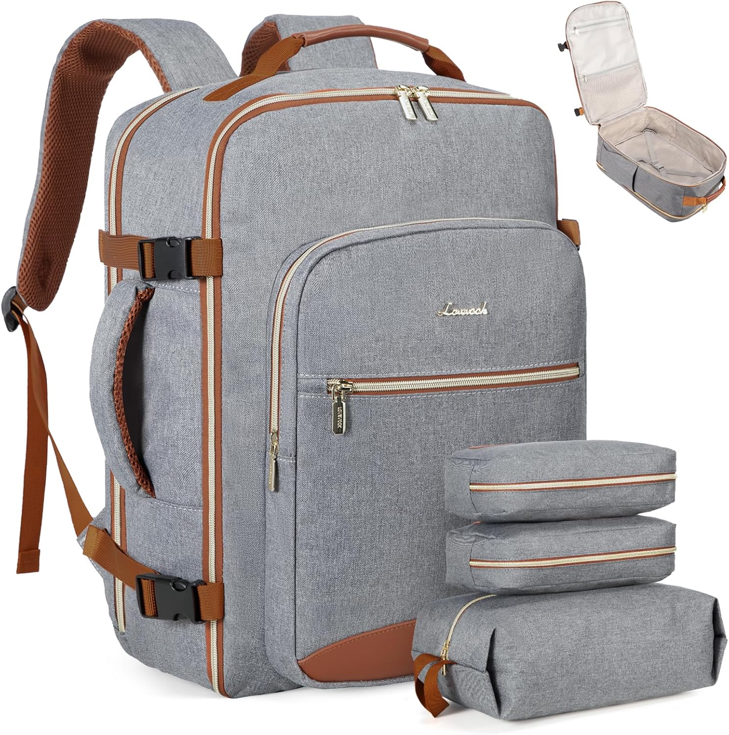 LOVEVOOK Travel Backpack for Women & Men 40L,Airline Approved Carry On Backpack Travel Essentials,TSA Carry on Luggage,Waterproof Personal Item Travel Bag,Suitcase with 3 Packing Cubes,Grey-Brown
