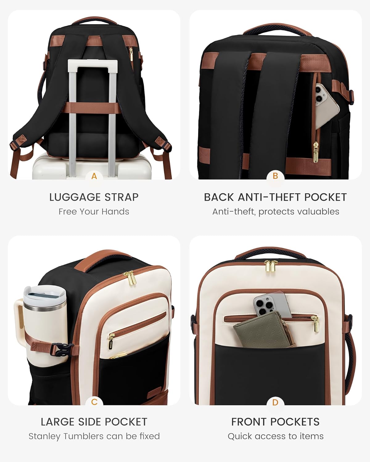 【Versatile Carrying Options】This womens travel backpack is designed for flexible use, allowing you to carry it by hand or as a carry on bag. It’s flight-approved as a personal item, making it ideal for travelers. A perfect gift for travel enthusiasts, it keeps all travel essentials easily accessible.