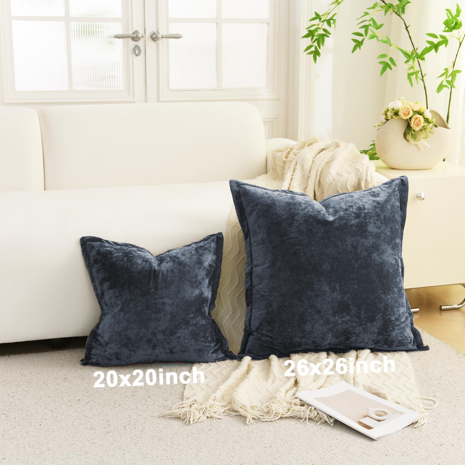 LR Rocaloca Greek Velvet Throw Pillow Covers Set of 2 20×20 Luxury Soft Solid Pillow Covers for Living Room Bedroom Yard,Blue Gray