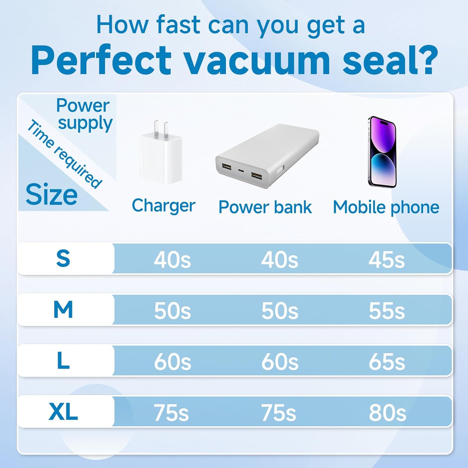 The vacuum pump reaches up to -60kPa for tighter compression. Each bag typically takes under 2 minutes to fully compress, depending on size and contents.