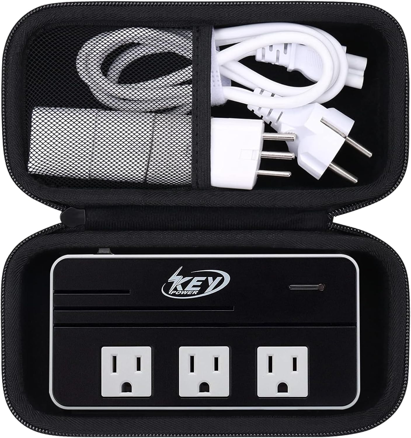 NOTE: This 500W transformer doesn’t support high-power appliances (e.g., coffee makers, hair dryers, rice cookers, microwaves, AC units, curling irons). Use only with low-power devices like phone/laptop chargers, small speakers, routers, or lamps. For high-power appliances, use a 3000W transformer instead.