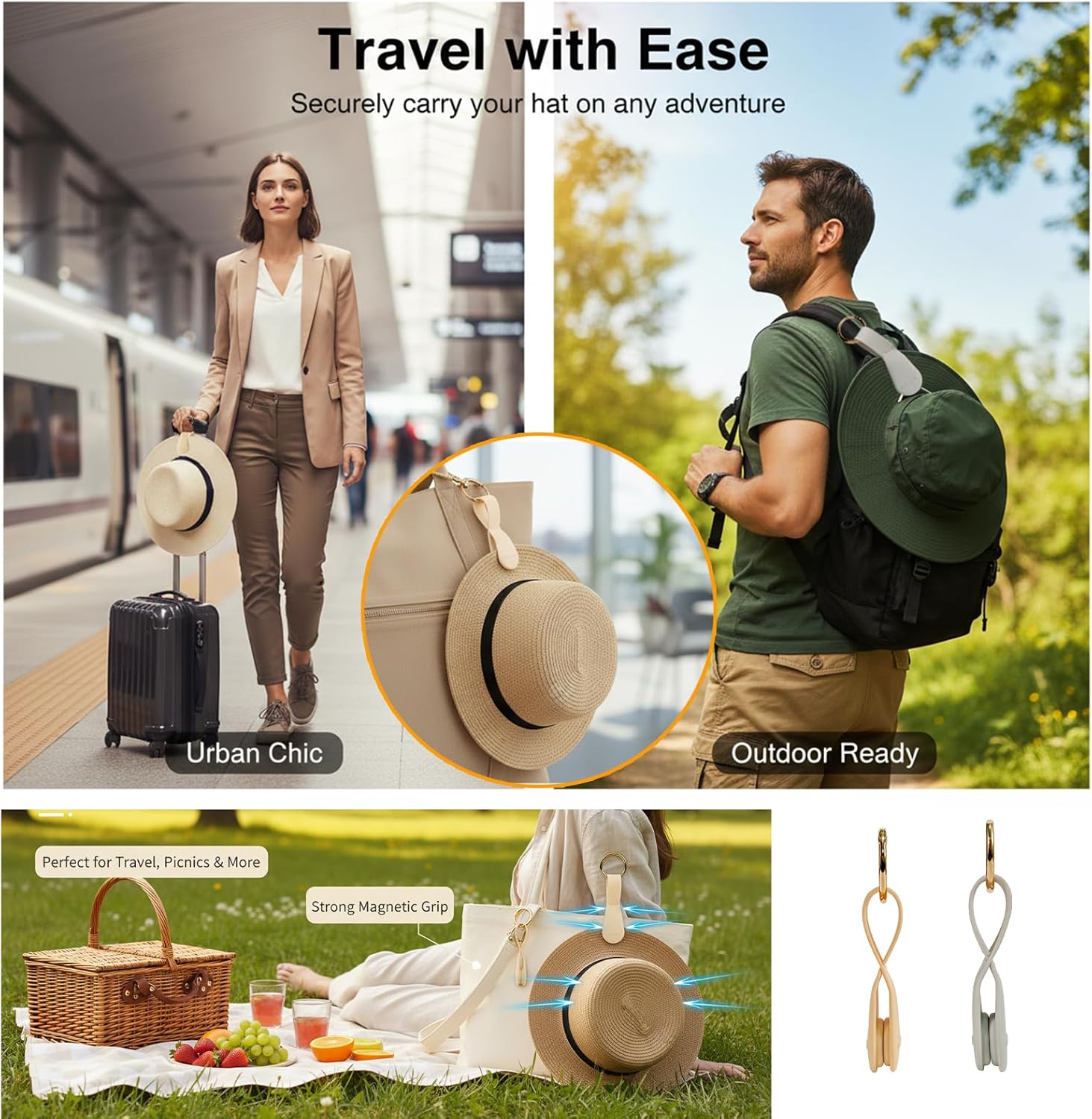 【The Perfect Travel Fashion Gift】A thoughtful and practical gift for the modern woman. Ideal for friends, family, or yourself, this hat clip is a must-have travel accessory. It combines utility with a fashionable design, making it a standout gift for holidays, birthdays, or as a vacation essential.
