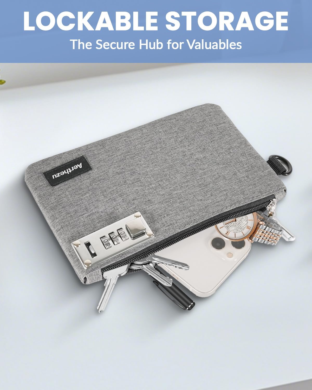 Money Bag with Lock, Aerthezu Cash Locking Bags with Zipper, Travel Safe Lockable Bank Bag, 2 Pack,Black & Grey – Size:5×8 Inches