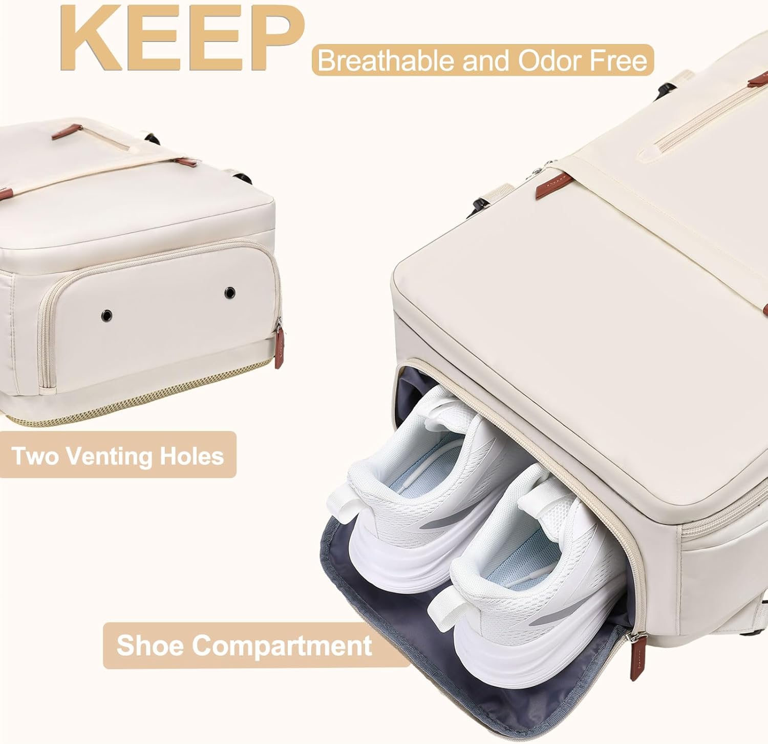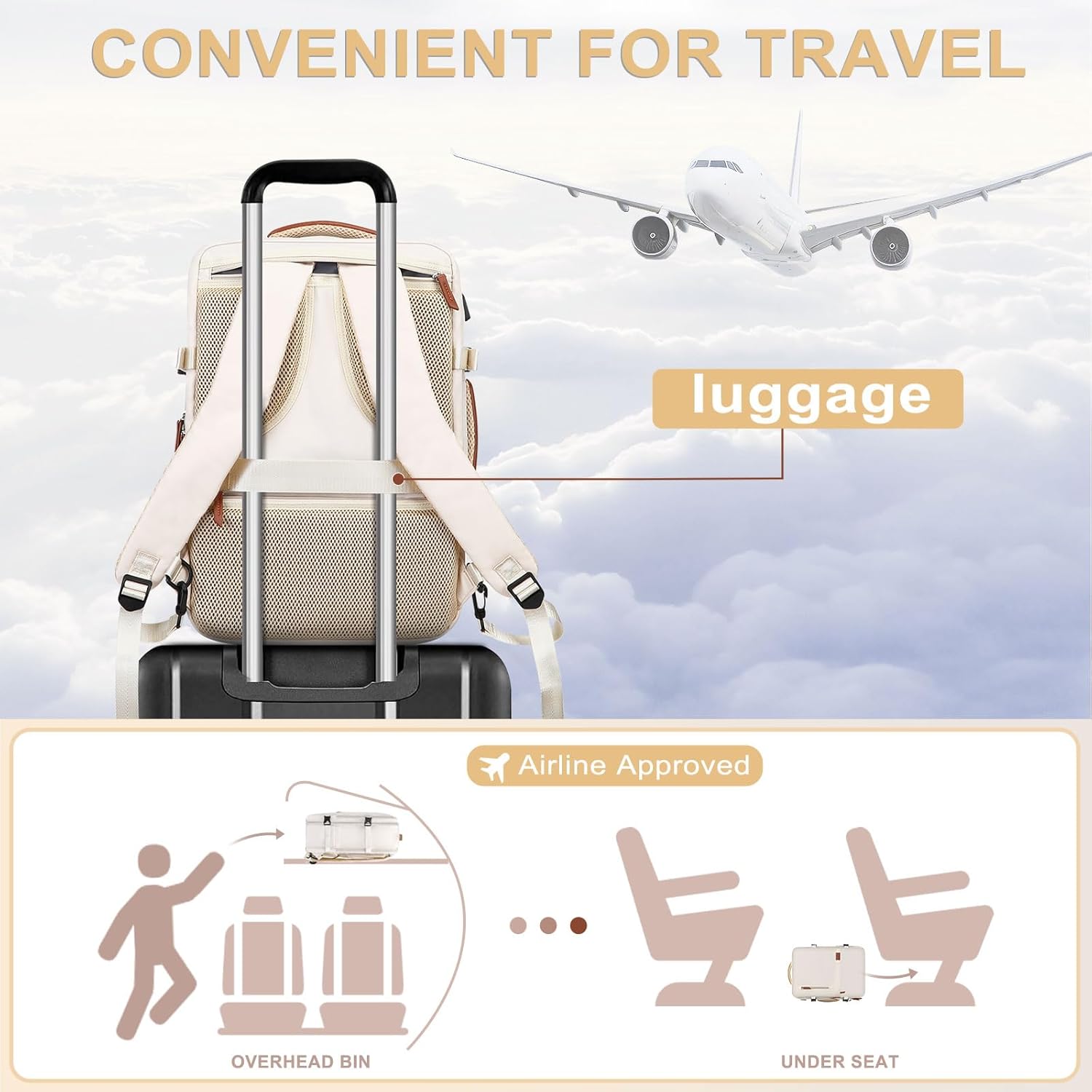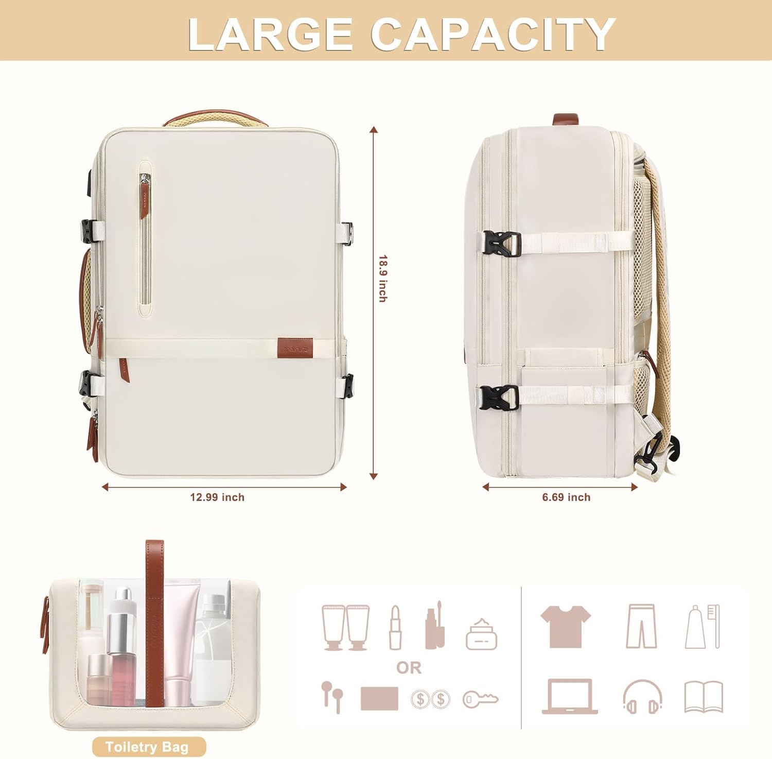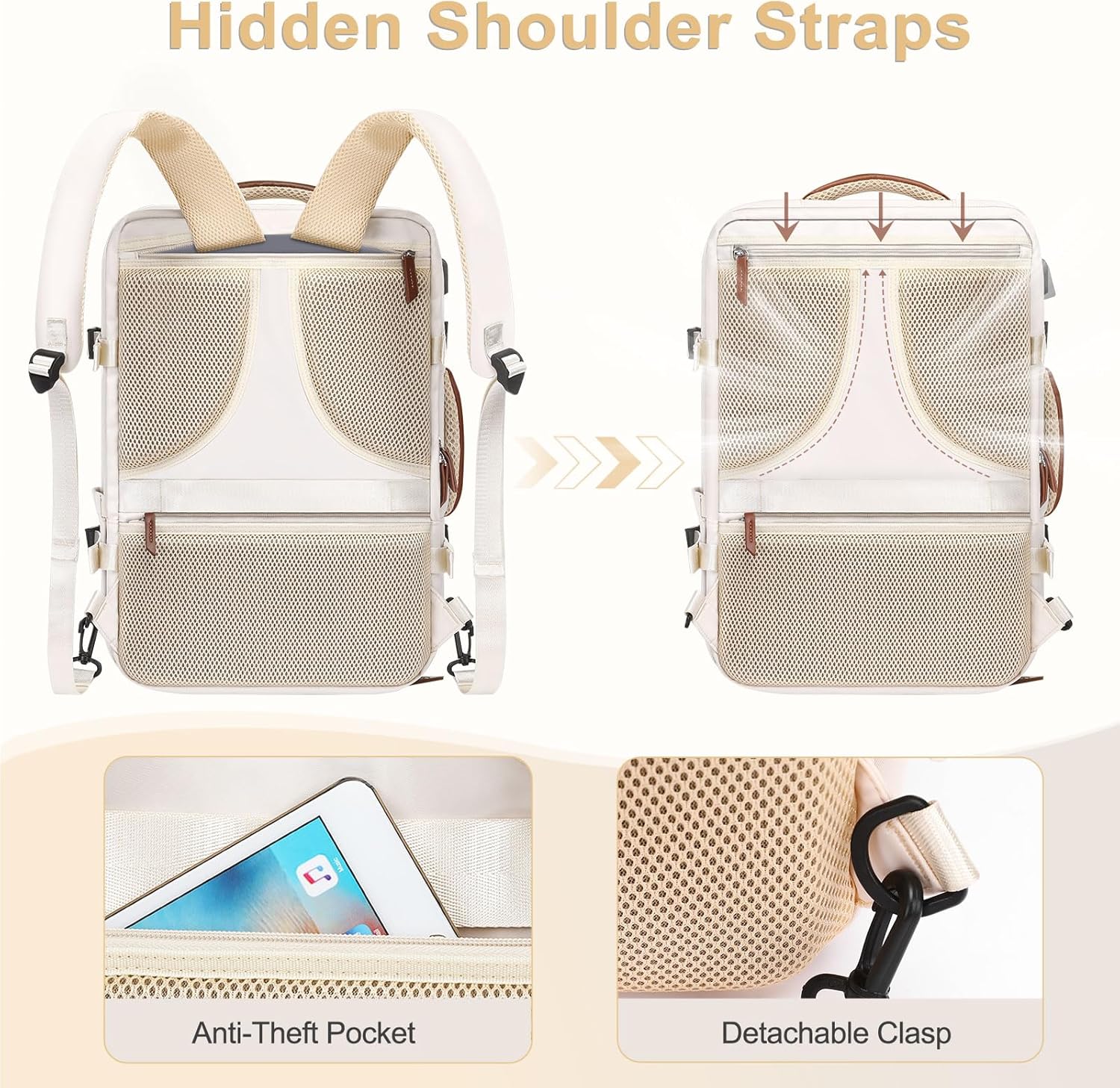 MOSISO Travel Backpack, 40L Carry on Laptop Backpack, 17-17.3 inch Airline Approved Luggage Bag with USB Port&Hidden Shoulder Strap, Casual Daypack with Toiletry Bag&Shoe Pocket, Beige