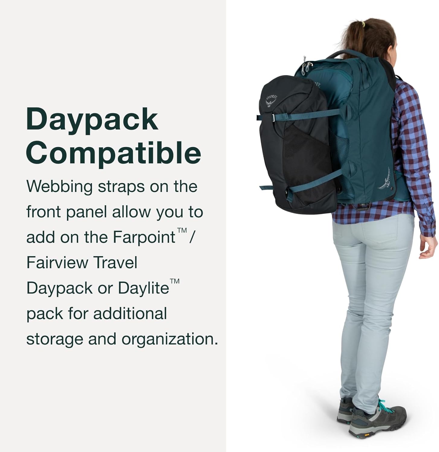 Farpoint/Fairview Travel or Daylite Pack Compatible – Webbing straps on the front panel of the pack come in handy when you need to bring an additional Farpoint/Fairview or Daylite pack