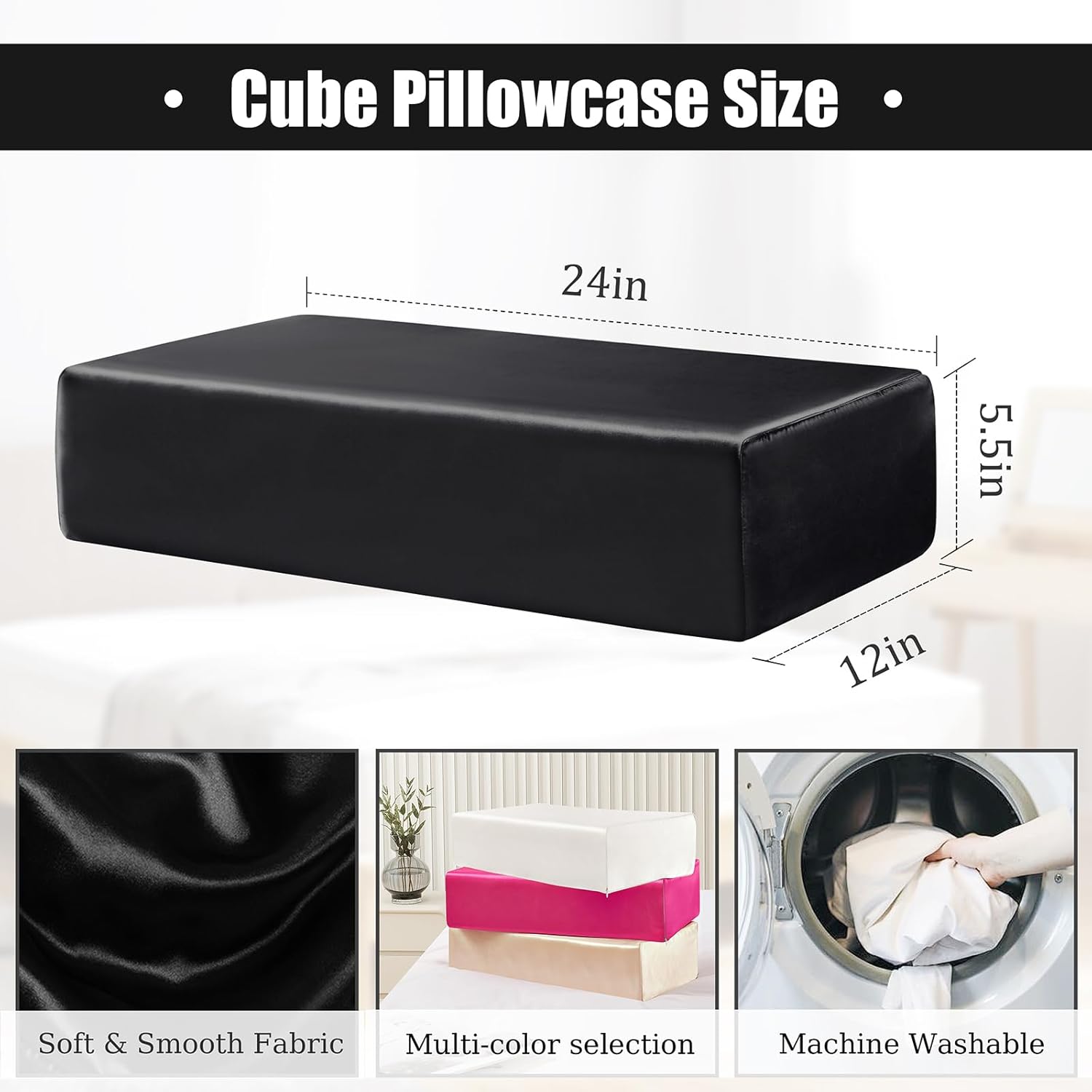 Perfect Fit for Cube Pillows – The 24″x12″x5.5″ Satin Cube Pillow Cover is designed to perfectly fit every corner of the cube pillow, ensuring a comfortable fit and enhancing the overall look and feel. (ONE pillowcase per package, pillow NOT INCLUDED.)