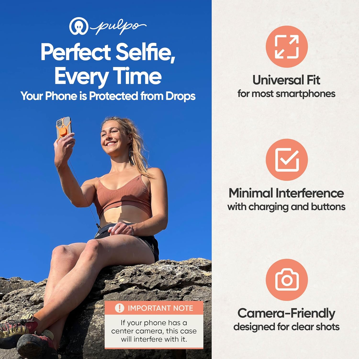 The Pulpo Safety Phone Leash works with phone sizes up to 6.8 inches. Whether you use a case or not, it attaches securely without blocking ports or cameras. This cell phone tether helps keep your device safe in daily use.