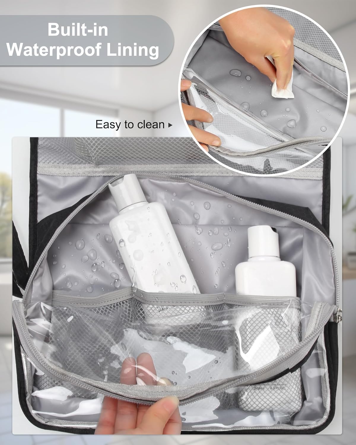 Relavel Travel Hanging Toiletry Bag for Men Women Travel Kit Shaving Bag Waterproof Large Makeup Bag Wash Bag Makeup Organizer Cosmetic Case for Bathroom Shower Black