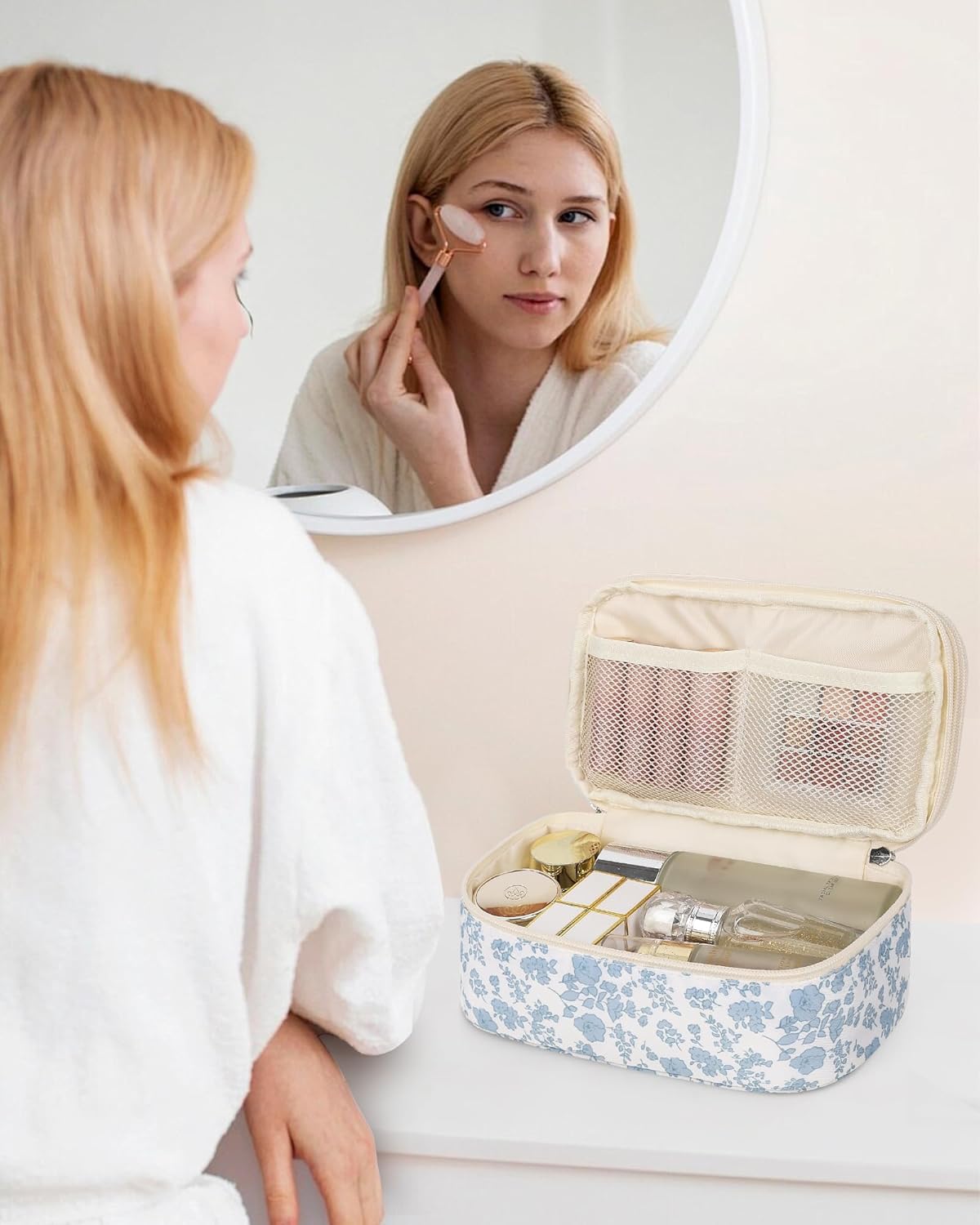 Compact Travel Makeup Bag: Size with 9.5*5.5*3.7 in, which is lightweight and portable cosmetic bag. It will organize all your beauty essentials neatly in place