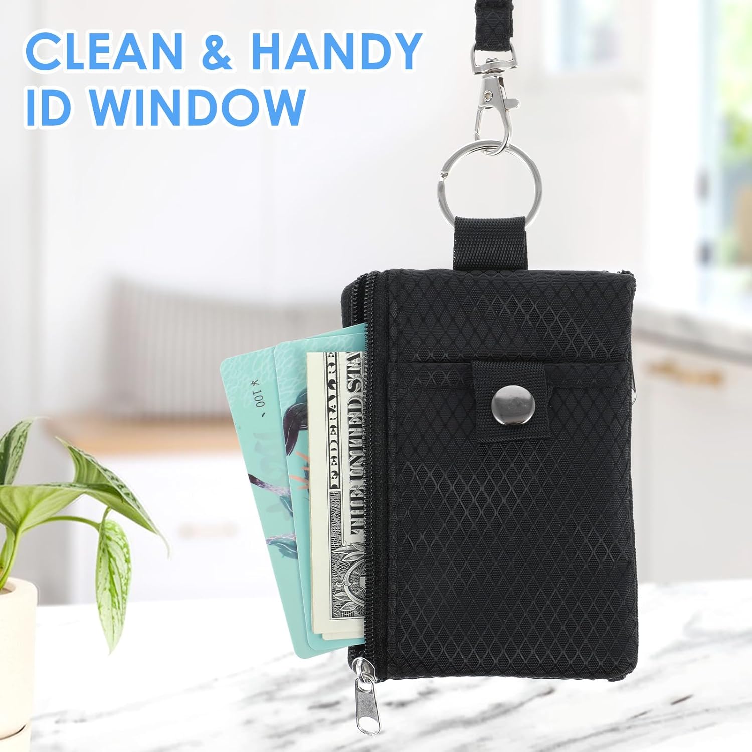 【Thoughtful Design】Lanyard with ID holder is designed with two zipper compartments, an ID card window, and an extra pocket, this card holder wallet provides ample space to organize your essentials. A removable lanyard and key ring add convenience and security.