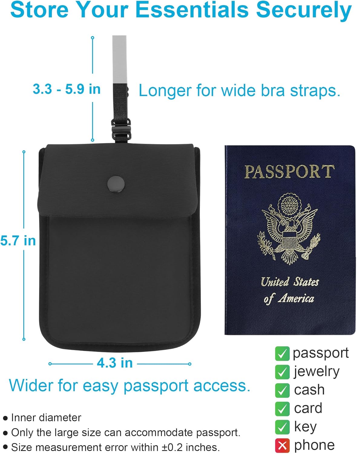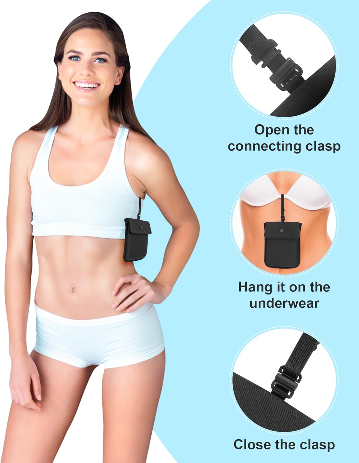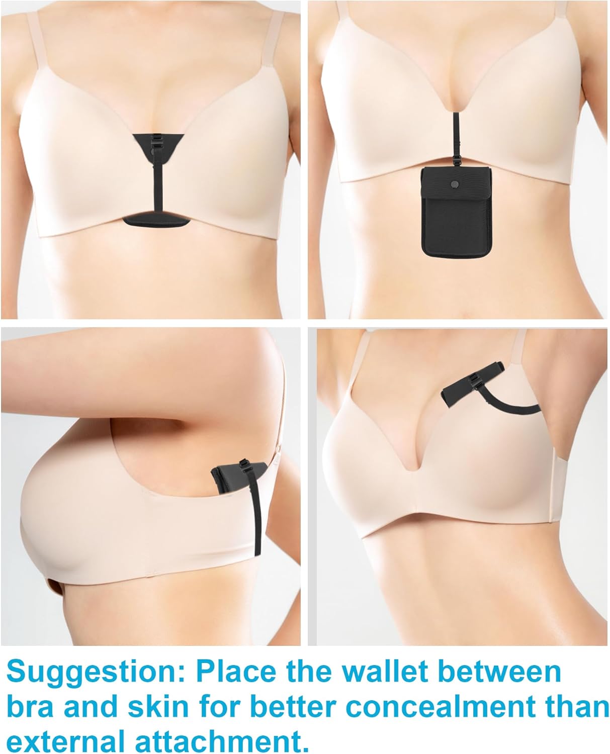 Secure RFID-Blocking: Ensure the safety of your passport, credit cards, ID, and cash with our RFID-blocking hidden bra wallet, designed to keep your essentials organized and protected during travel or special events