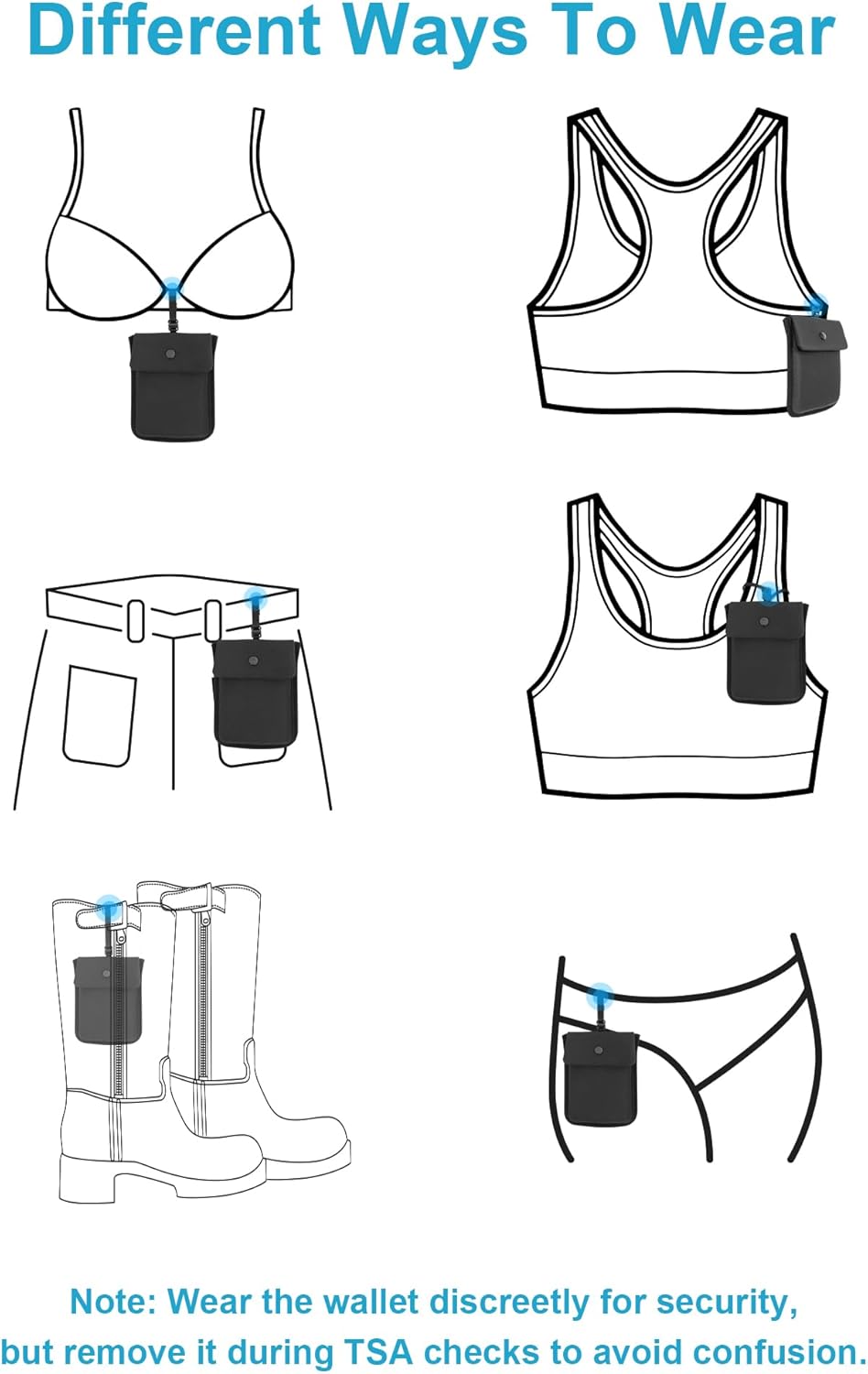 Note: Wear this travel wallet discreetly under your clothing for optimal security. However, remove it when passing through TSA to prevent any confusion.