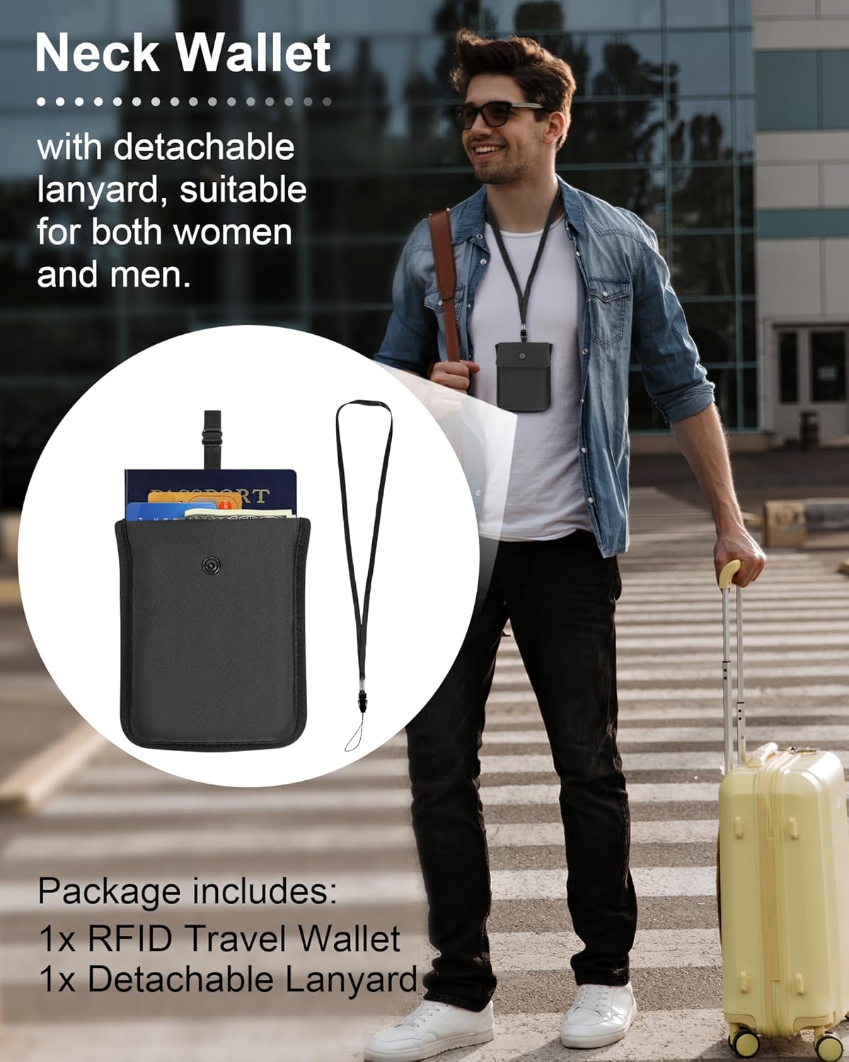 With the detachable lanyard, the wallet can be worn around your neck for a hands-free experience, allowing easy access to your valuables. Please be aware that this method may not offer the same level of concealment.
