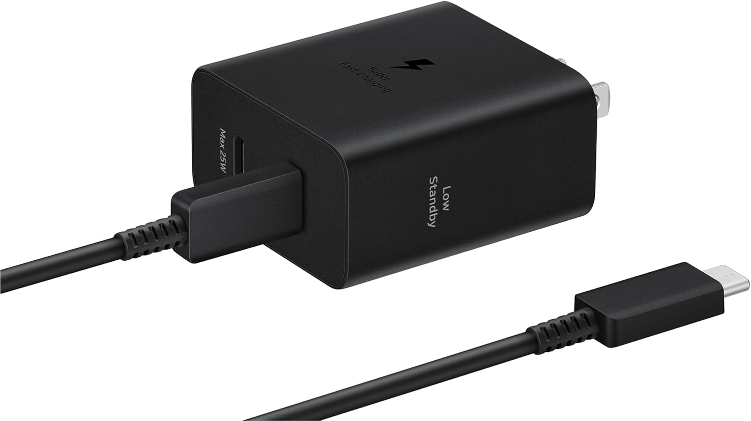 ¹50W Duo Power Adapter can charge up to two (2) devices simultaneously for a total of 50W power supply. Actual charging speeds depend on the number and charging capacity of devices; when charging two devices simultaneously, charging speed is up to 25W per port. ²Super Fast Charging 2.0 (SFC) only supported with top charging port and with Galaxy smartphones with 45W charging capability or above and other SFC-capable devices. SFC only capable with the C-type ports of the charger. ³Includes one (1) 5A charging cable; use only Samsung-approved chargers and USB-C cable. To avoid injury or damage to your device, do not use incompatible, worn or damaged batteries, chargers or cables.