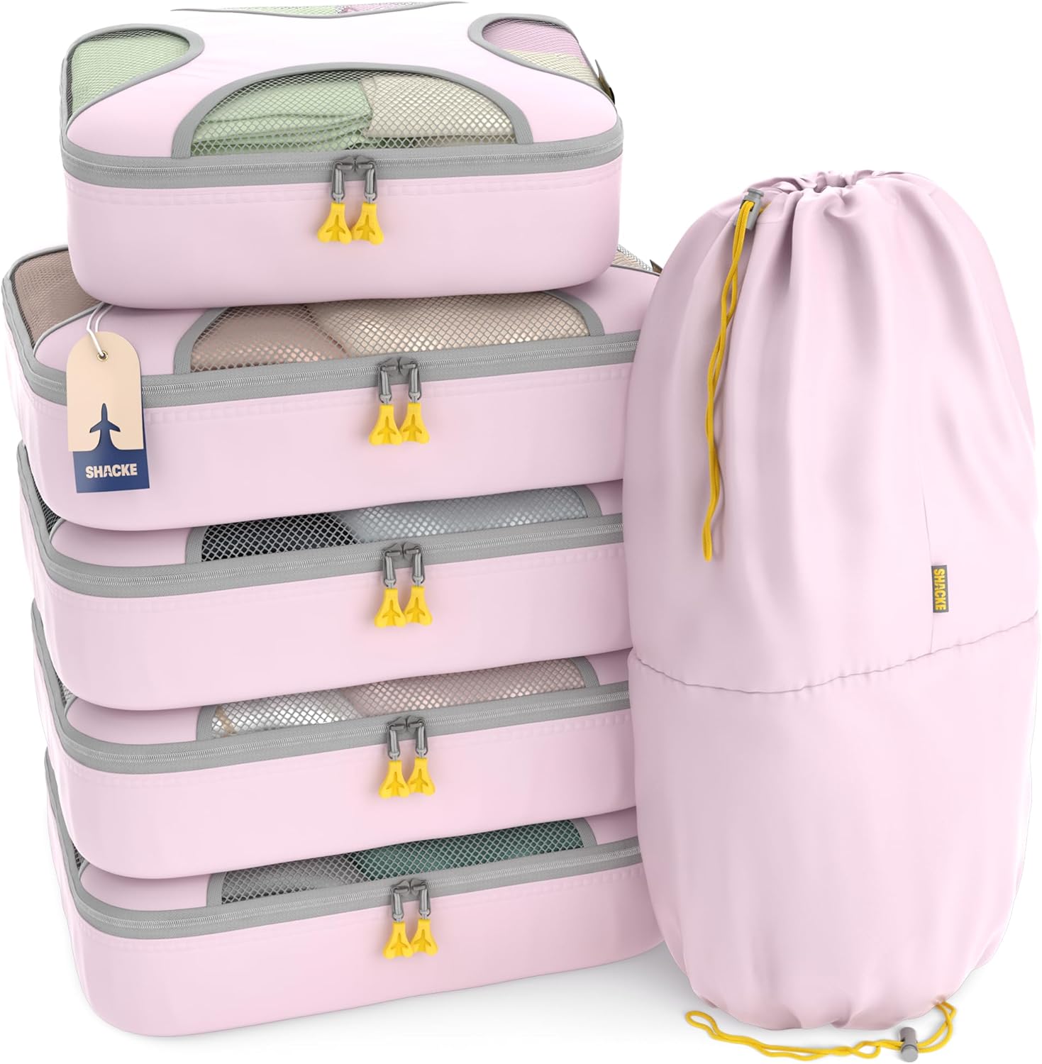 Shacke 6 Set Packing Cubes for Travel – Compression Packing Bags/Travel Organizer – Luggage Organizer Bags for Traveling – Travel Essentials for Women – Cruise Must Haves Packing List