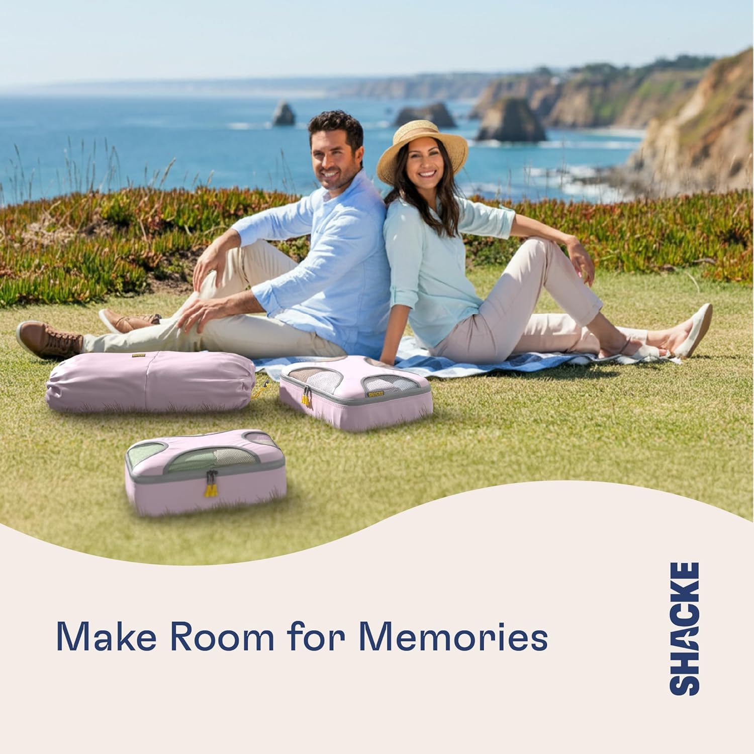 Introducing the Shacke 6 Set Packing Cubes for Travel, the ultimate lightweight luggage organizers designed to streamline your packing experience. Crafted from durable, water-resistant nylon, these packing cubes feature our original reinforced stitching, ensuring they withstand the rigors of travel. The breathable mesh top allows for easy visibility and ventilation, keeping your clothes fresh and organized. This quintessential packing starter kit includes four medium cubes (13.75″ x 9.75″ x 4″) and one small cube (11″ x 6.75″ x 4″), providing ample space for a 10 to 14-day vacation. The 4-inch depth offers extra room for your clothing, while the smooth, snag-free ergonomic zipper pulls ensure effortless access. Additionally, the set comes with a versatile double-sided bag, perfect for dirty laundry, shoes, or extra clothing. Whether you’re traveling by car, train, or plane, the Shacke Pak makes life on the road much easier. Our customers enjoy using these cubes for day trips or even big romantic getaways. No trip is too big or too small for the versatility of our packing cubes. Plus, the easy-clean material allows liquids to glide smoothly off, making cleaning a breeze. For over 10 years, Shacke has been trusted by thousands of customers worldwide to help with their packing needs. We have always led with the philosophy of making travel products to maximize your adventures. Join the thousands of customers and experience the Shacke difference for yourself. Simplify your travel routine and pack smarter with the Shacke 6 Set Packing Cubes for Travel. Order now and enjoy a more organized and stress-free journey.