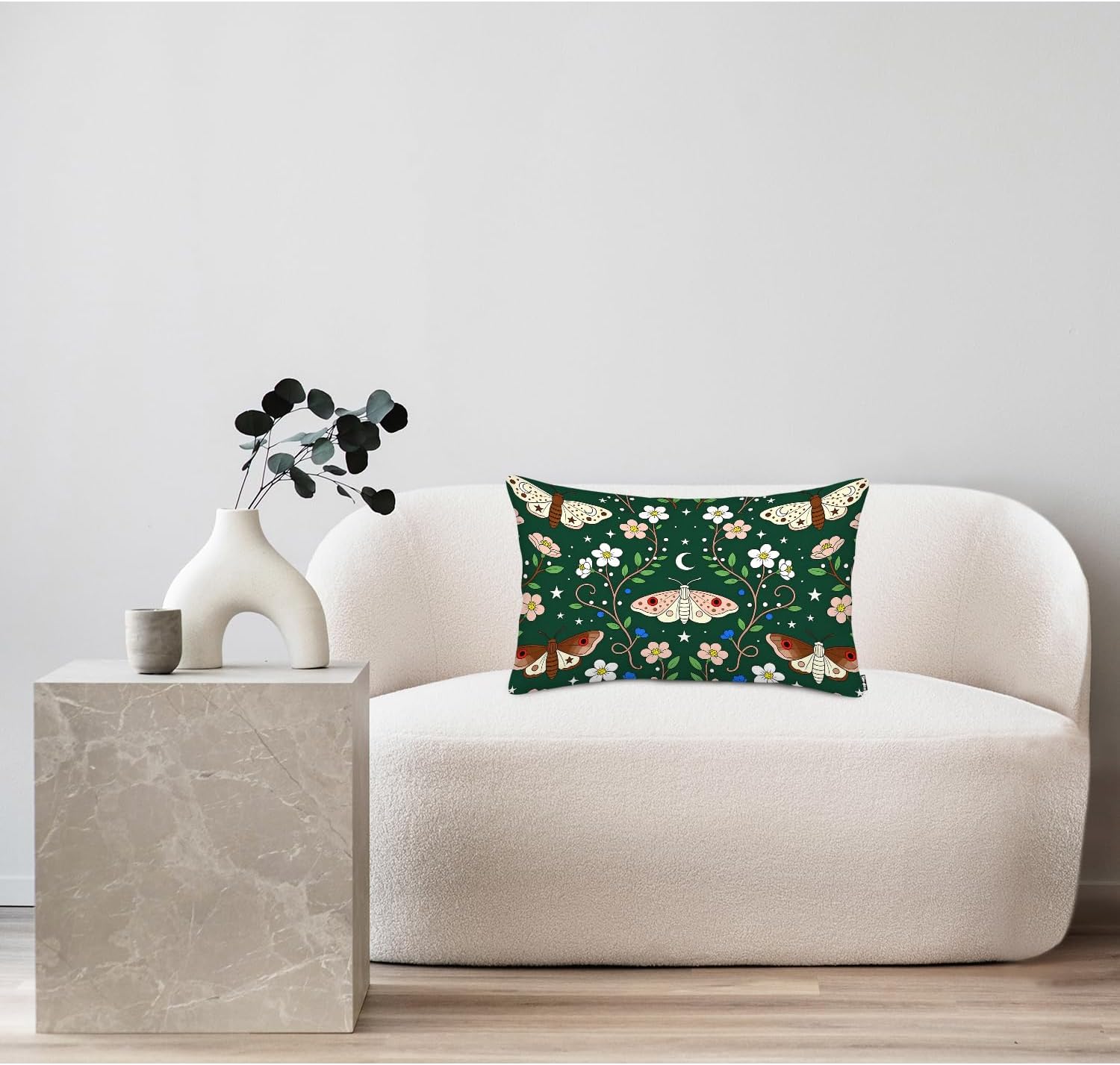 1. Material: The Floral Moon Moth rectangle throw pillow cover made of polyester material. The touch is skin friendly and comfortable, soft, breathable, not stuffy, and not easily deformed or faded