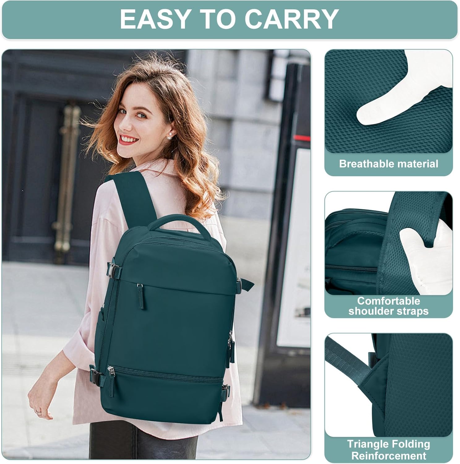 COMFORTABLE AND DURABLE: The backpack for travel is made of waterproof, eco-friendly and durable nylon fabric. Comfortable and breathable padding provides back support, soft and breathable mesh padded shoulder straps and adjustable chest buckle relieves pressure on your shoulders, so you are always relaxed and comfortable.