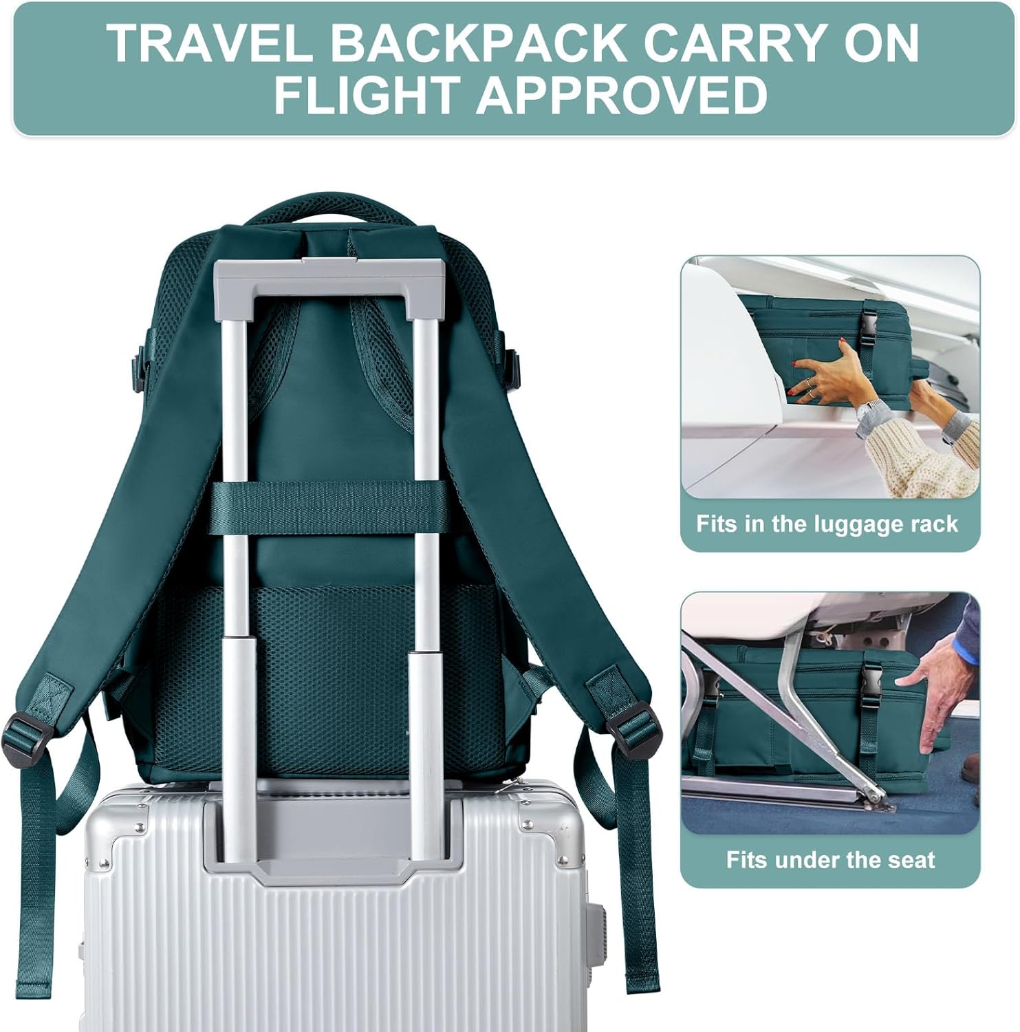 TSA FRIENDLY AND FLIGHT APPROVED: The carry on backpack measures 15.75 x 9.84 x 7.87 inches (H x L x W), weighs 2.2 pounds, and is free to unfold 180° for security scanning, allowing you to quickly pass through airport security.The suitcase backpack’s rear baggage strap slips easily over the handle of any suitcase, making it even easier to carry around.