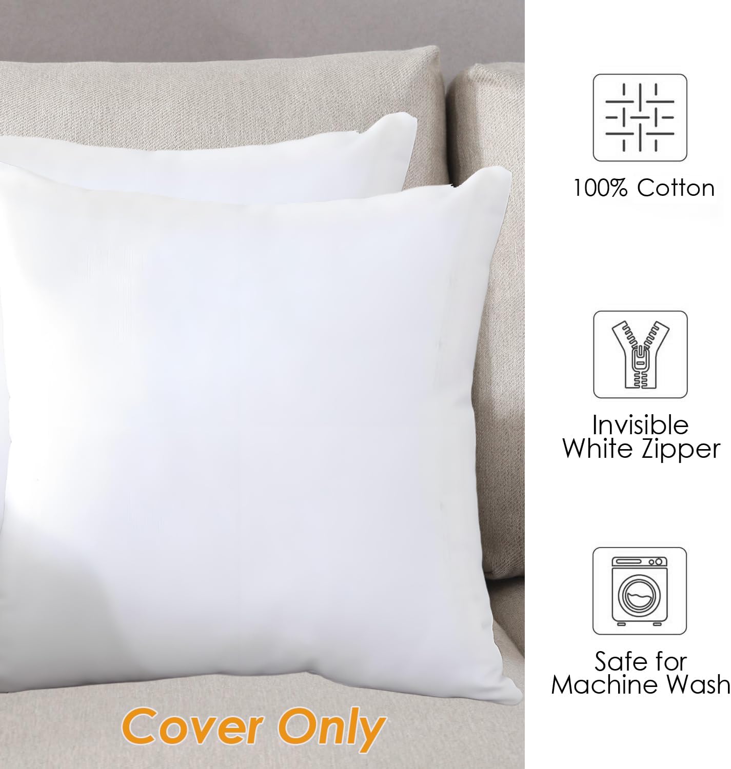 Features:These 100% cotton pillowcases with matching hidden zipper to allow easy inserting and removing of pillow inserts and keep the pillow stay in place.